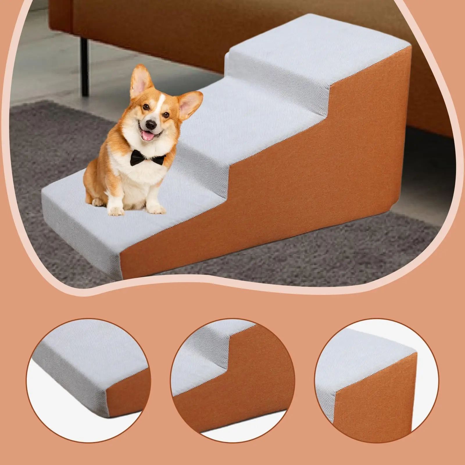 Help pets reach beds, sofas, cars, and other elevated spots more comfortably with this 3-step slope ramp designed for everyday indoor use. The gradual step layout creates an easier climbing path, while the anti-slip bottom helps keep the stairs steadier during daily movement. Its soft supportive structure offers a more comfortable feel under paws, making it a practical choice for pets that need gentler access to favorite resting areas. With a removable washable cover, this design also makes routine care and cleaning more convenient for everyday home use.