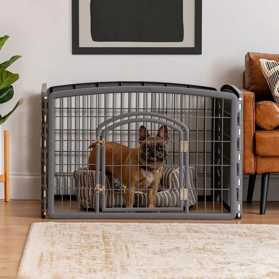 Give your pet a more secure and comfortable space with this 4-panel playpen designed for daily indoor and outdoor use. Its compact layout helps create a defined area for puppies and small to medium pets to rest, play, and move around while making supervision easier. The built-in door allows more convenient entry and exit, so everyday use feels simpler and more practical. With an easy-to-assemble structure and a clean, versatile look, this playpen is a useful option for creating a controlled pet area at home or outside.