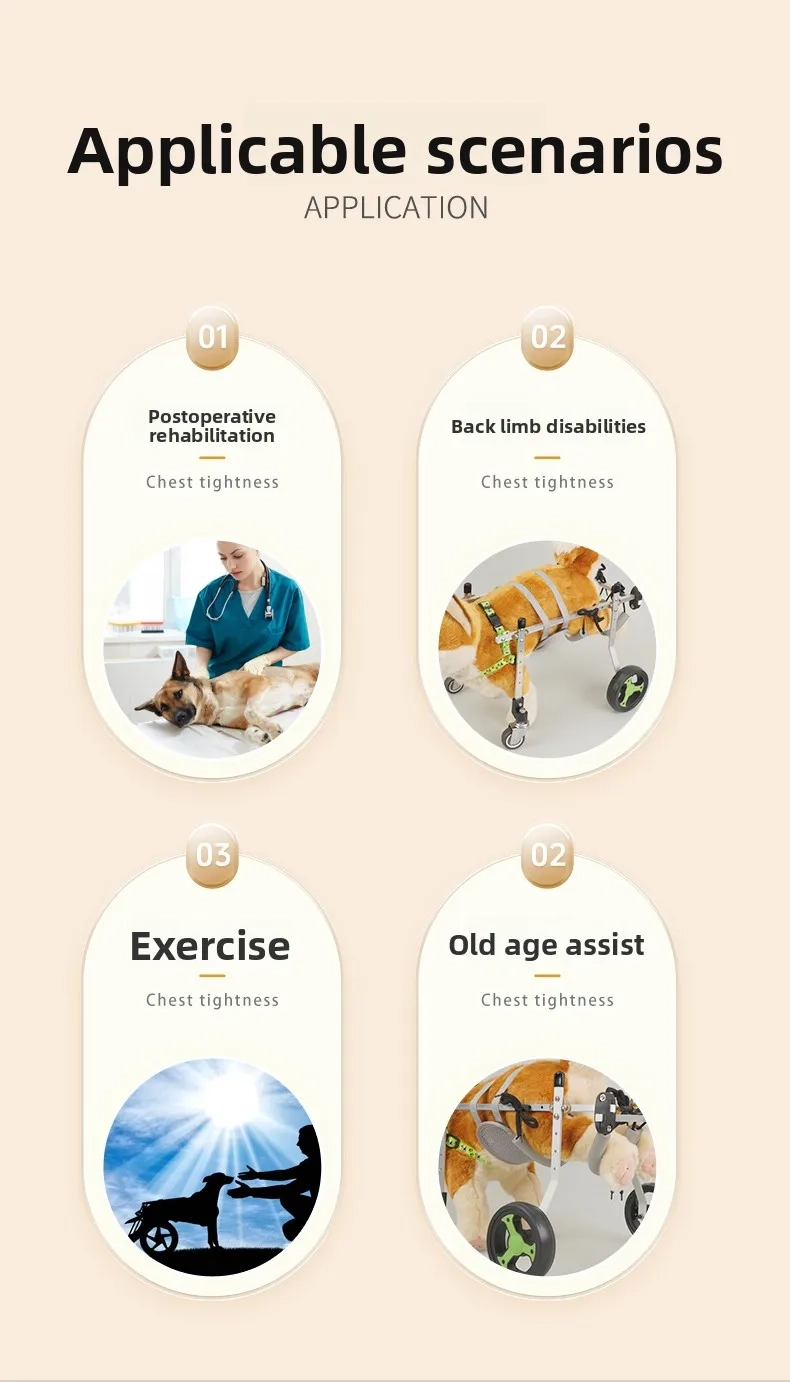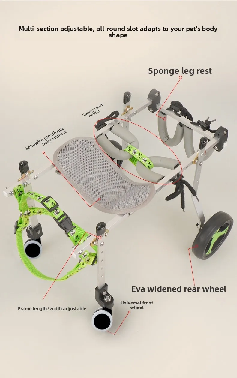 - Please choose the size and wheel configuration based on your pet’s body measurements and support needs.