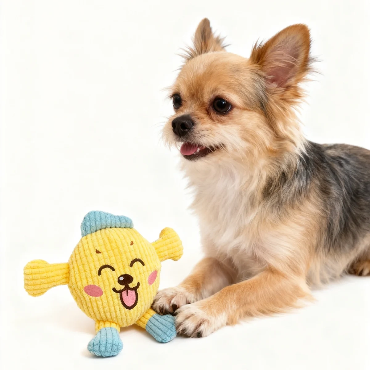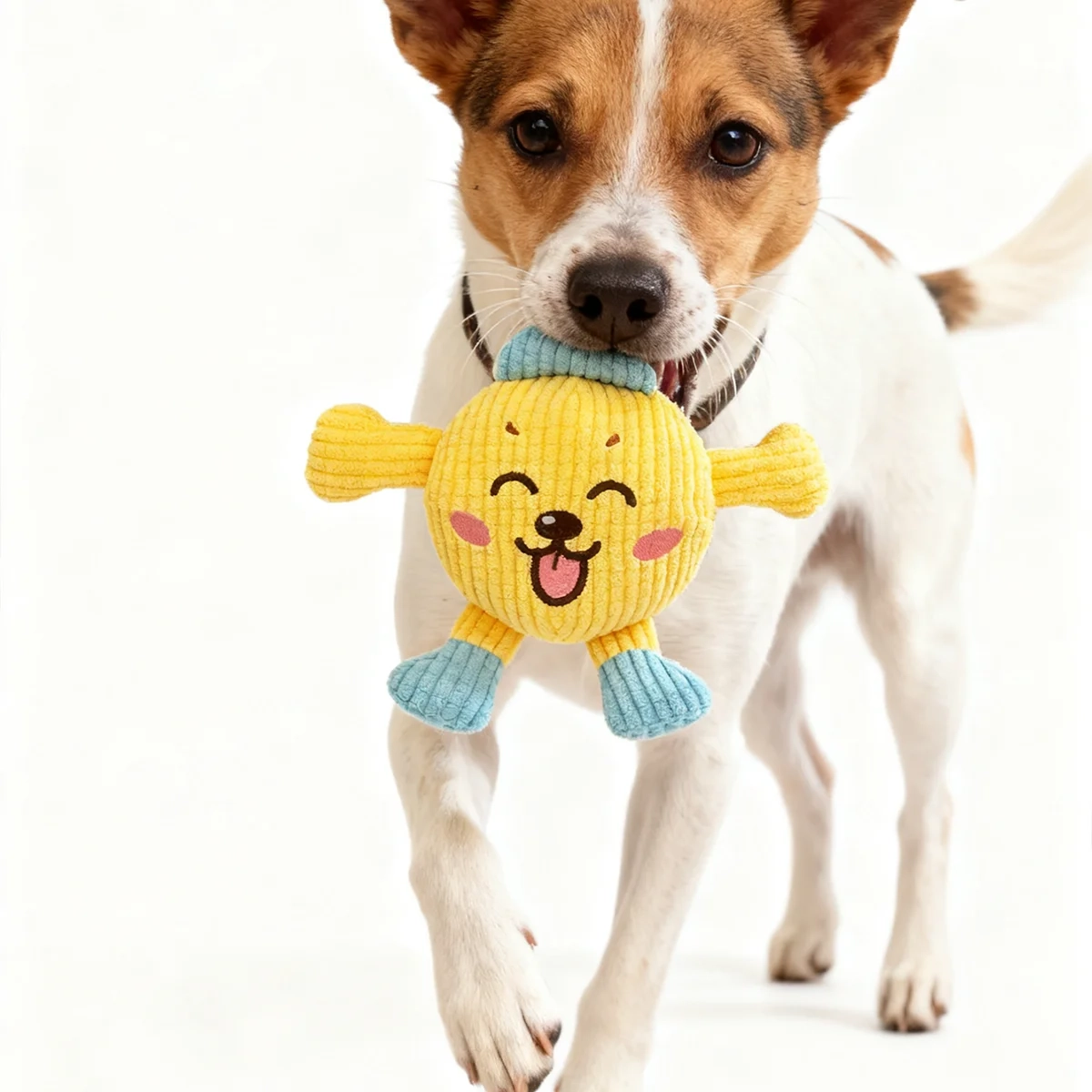 Add more fun to your dog’s daily routine with this cartoon plush toy designed for chewing, carrying, and interactive play. The soft fleece texture gives it a comfortable feel, while the built-in squeaky feature helps keep dogs engaged during everyday indoor play sessions. Its cute cartoon-inspired design adds extra charm and playful character, making it a cheerful option for pets that enjoy tossing, biting, and staying active throughout the day. Available in gold and yellow styles, it brings variety and playful energy to your dog’s toy collection.