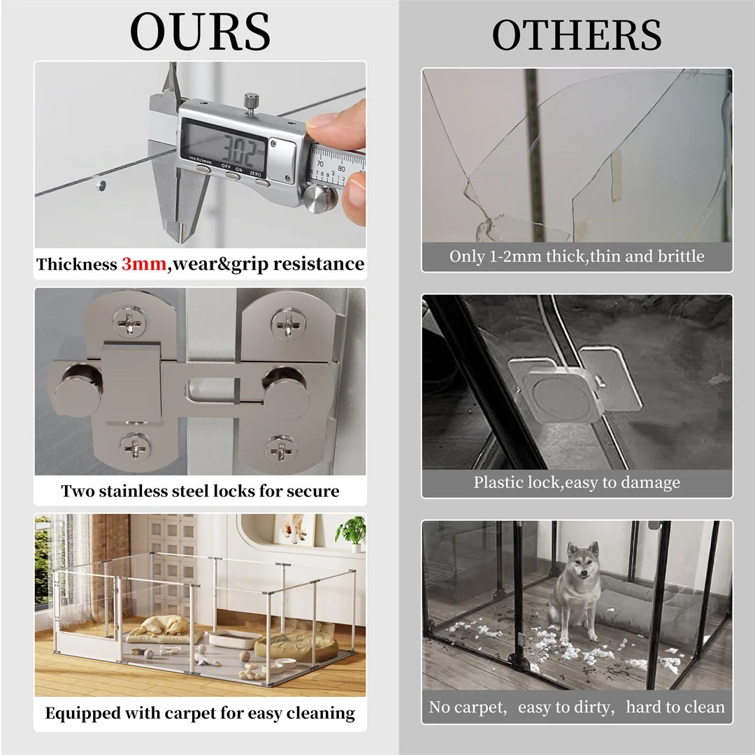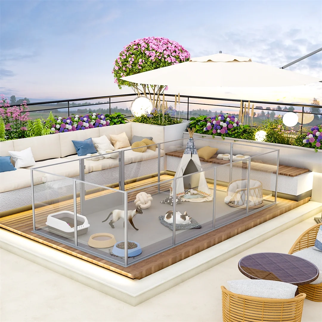 Create a cleaner and more open indoor pet space with this clear acrylic playpen designed for daily containment, supervised play, and flexible home use. The transparent panel design helps maintain visibility from every angle, making it easier to interact with pets while keeping the area feeling bright and less enclosed. Its spacious layout offers room for rest, movement, and everyday routines, while the enclosed structure helps create a more organized boundary for indoor living. Suitable for training, play, and whelping use, it is a practical option for pet owners who want a more polished and modern setup at home.