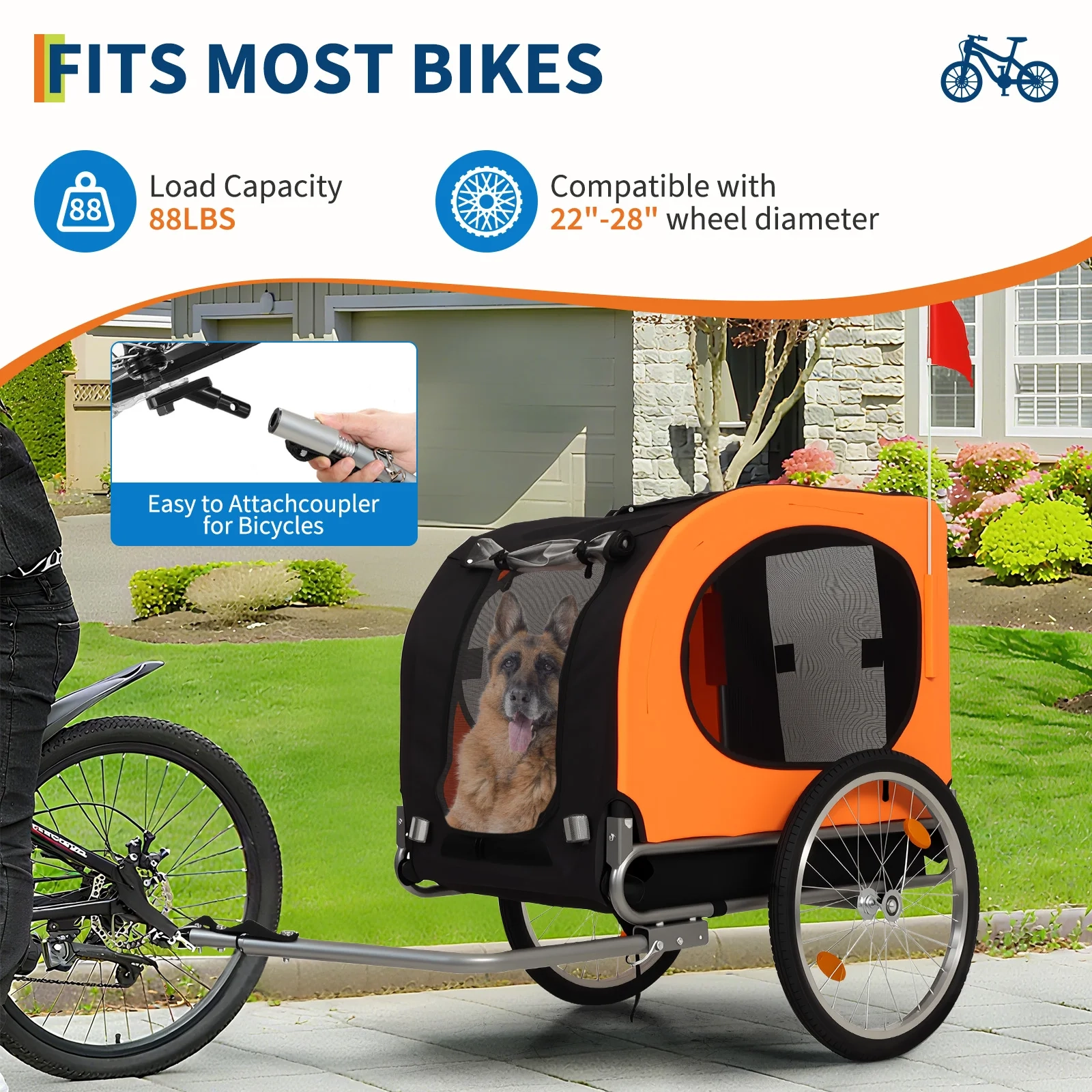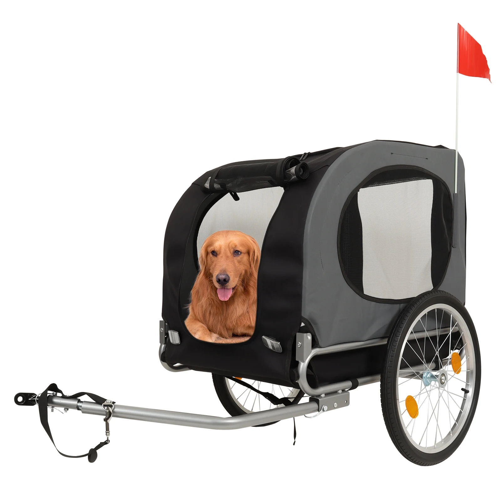 Take your pet along for outdoor rides and everyday adventures with this collapsible pet bike trailer wagon designed for spacious travel and versatile use. The enclosed cabin offers a more secure and comfortable space for pets during bike rides, neighborhood outings, and open-air trips, while mesh panels help maintain airflow and visibility along the way. Its foldable frame and quick-release wheels make storage and transport more convenient between uses. With a sturdy build, weather-ready cover, and multi-use design, this trailer wagon is a practical choice for pet owners who want more flexibility for active outdoor routines.
