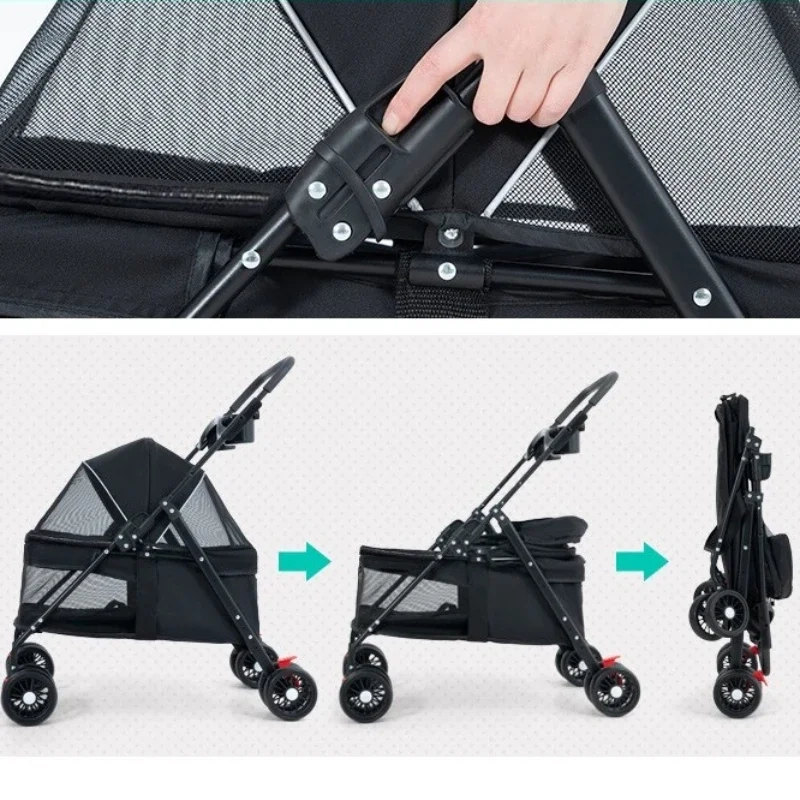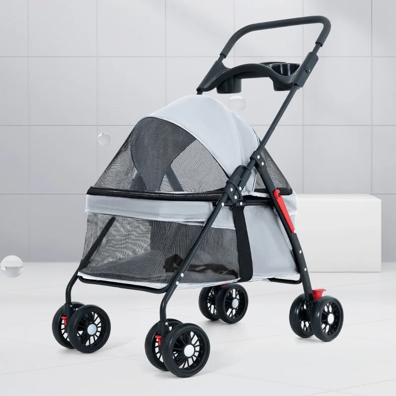 Make daily outings easier with this compact foldable pet stroller designed for lightweight travel, smooth movement, and everyday convenience. The enclosed cabin gives pets a more secure and comfortable space during walks, errands, and outdoor trips, while the breathable design helps improve airflow and visibility along the way. Its foldable frame makes storage and transport more practical for daily use, and the lightweight structure is easier to handle when moving between home, car, and outdoor settings. Available in multiple color options, it is a practical choice for pets that enjoy a more relaxed and supported ride.