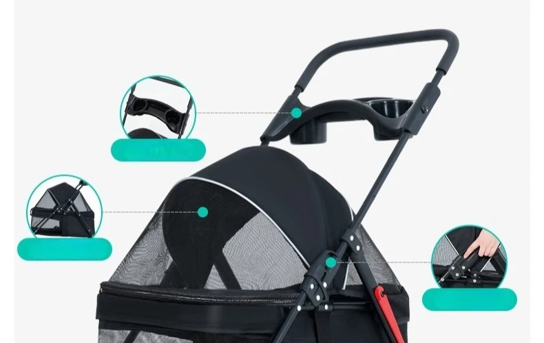 Double Space Pet Stroller with Reversible Handle