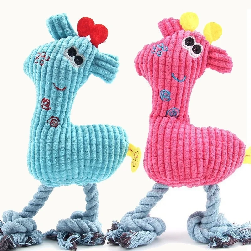Corduroy Rope Squeaky Dog Toy in Animal Styles