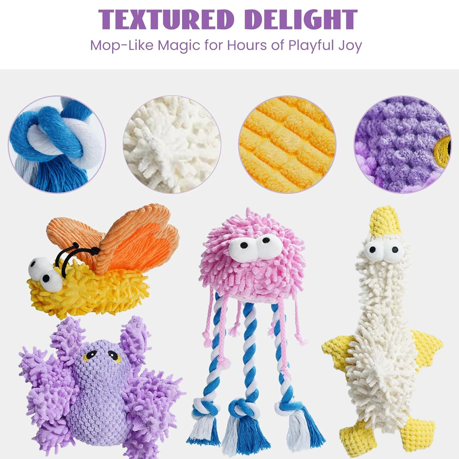 - Squeaky and crinkle features for added engagement