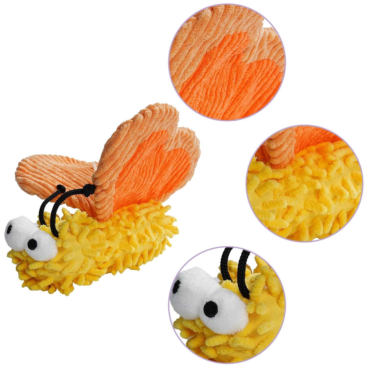 Keep your dog engaged with this plush interactive toy designed for chewing, carrying, and everyday play. The soft textured surface adds extra sensory interest, while the squeaky and crinkle elements help make playtime more exciting and varied. With playful butterfly, jellyfish, duck, and spider styles, this toy brings character and fun to your pet’s routine while encouraging active indoor play. It is a lively everyday option for dogs that enjoy tossing, biting, and exploring different textures during play sessions.