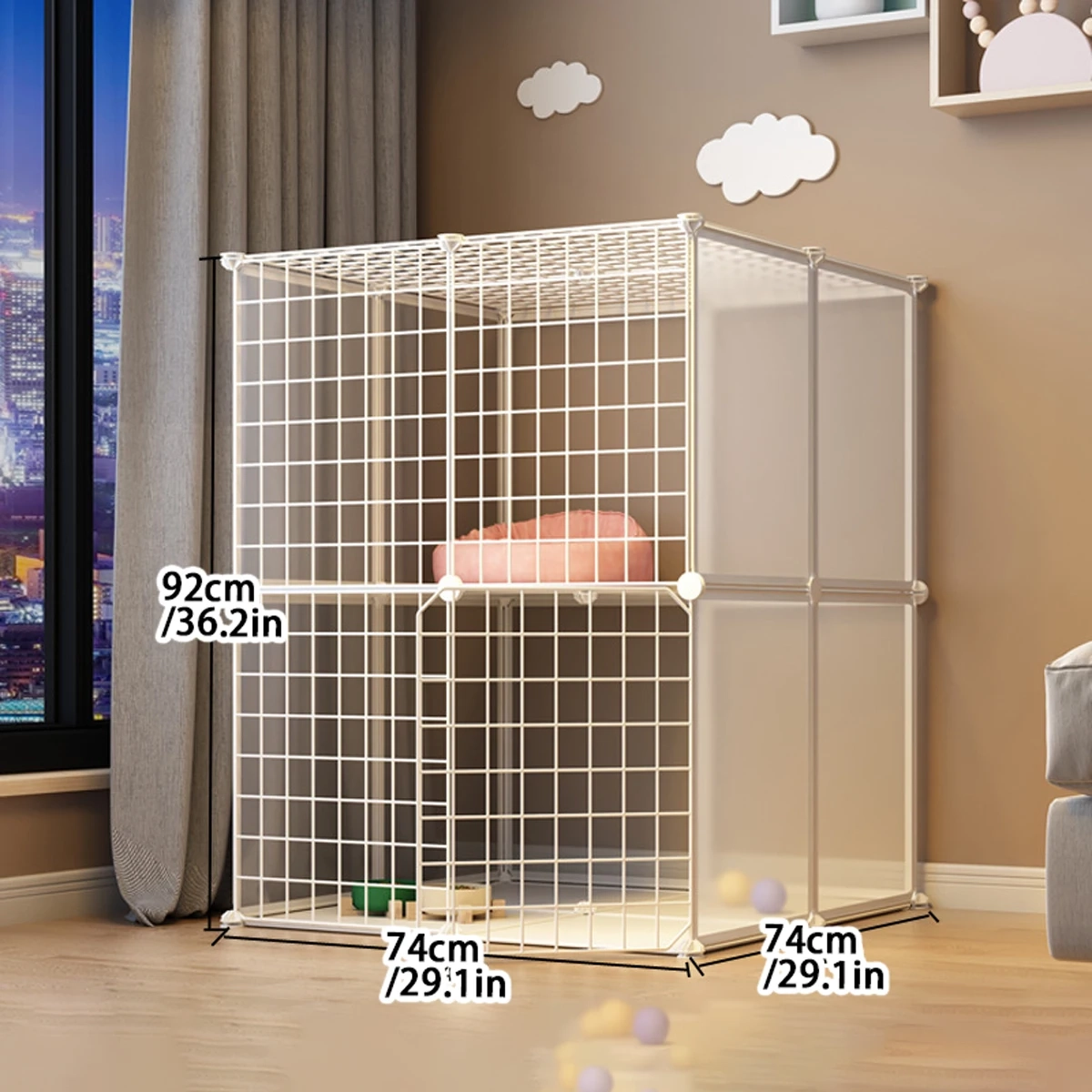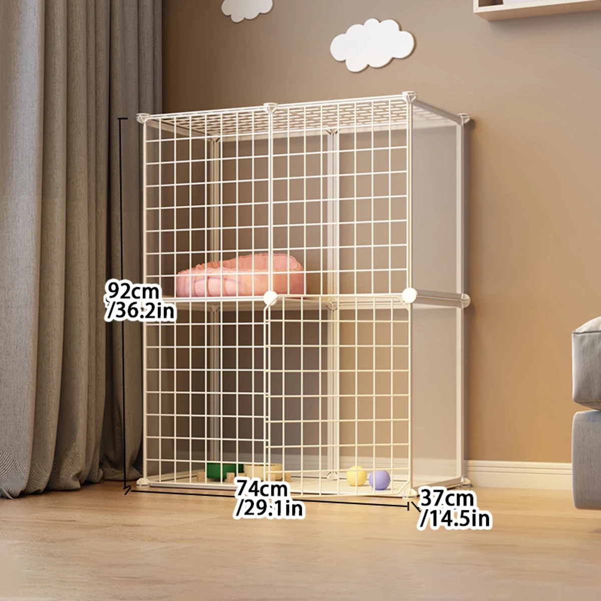 Create a more organized indoor space for pets with this double-layer pet playpen designed for rest, play, and everyday separation. The enclosed multi-level layout helps define a dedicated area for pets while making better use of vertical space, which is especially useful for smaller home environments. Its structured design supports daily routines such as supervised play, quiet time, and short-term containment, while the enclosed style helps reduce wandering into unwanted areas. Suitable for cats, kittens, puppies, and other small pets, it is a practical option for households that want a more contained and versatile indoor setup.