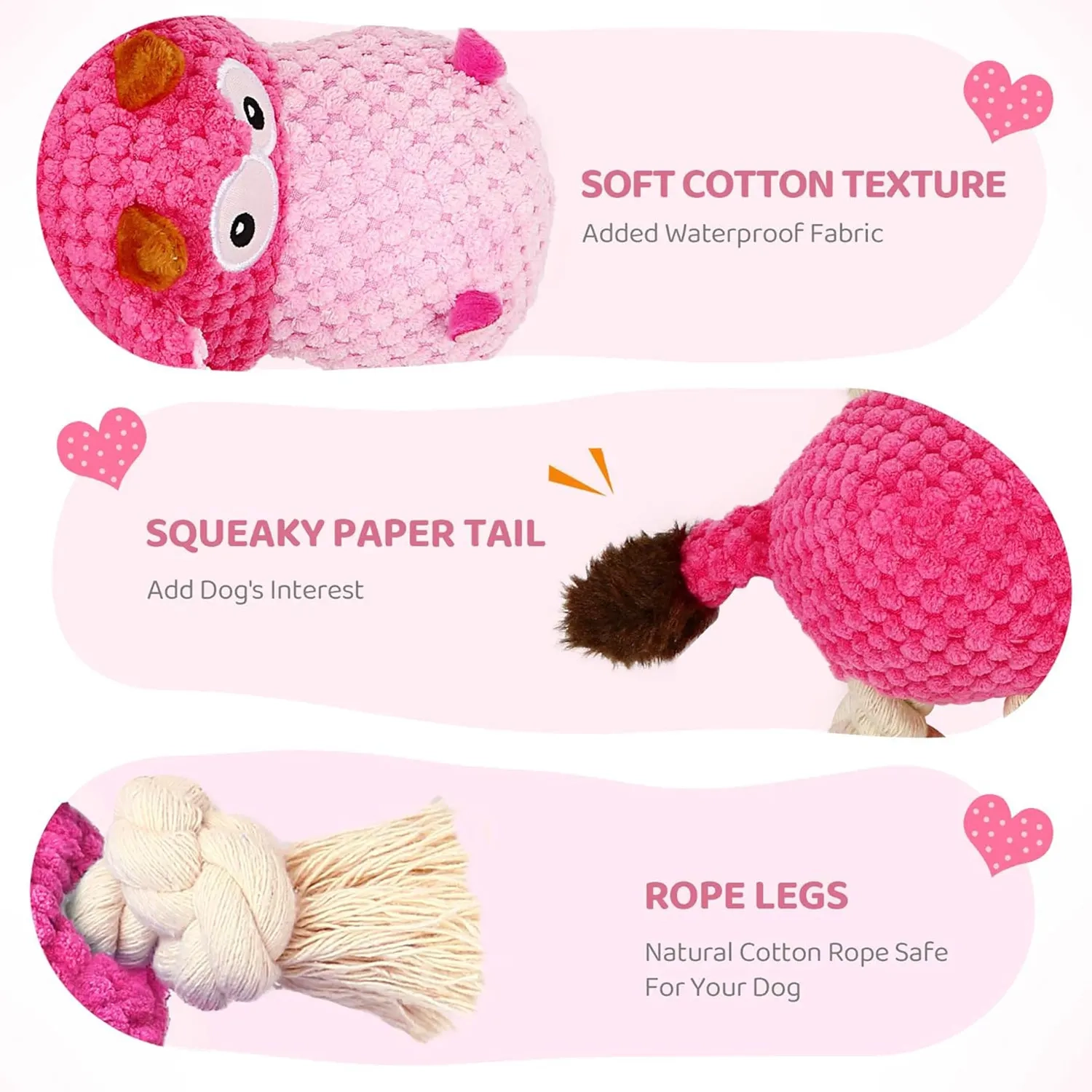 - Cotton rope details for extra chewing and tug play