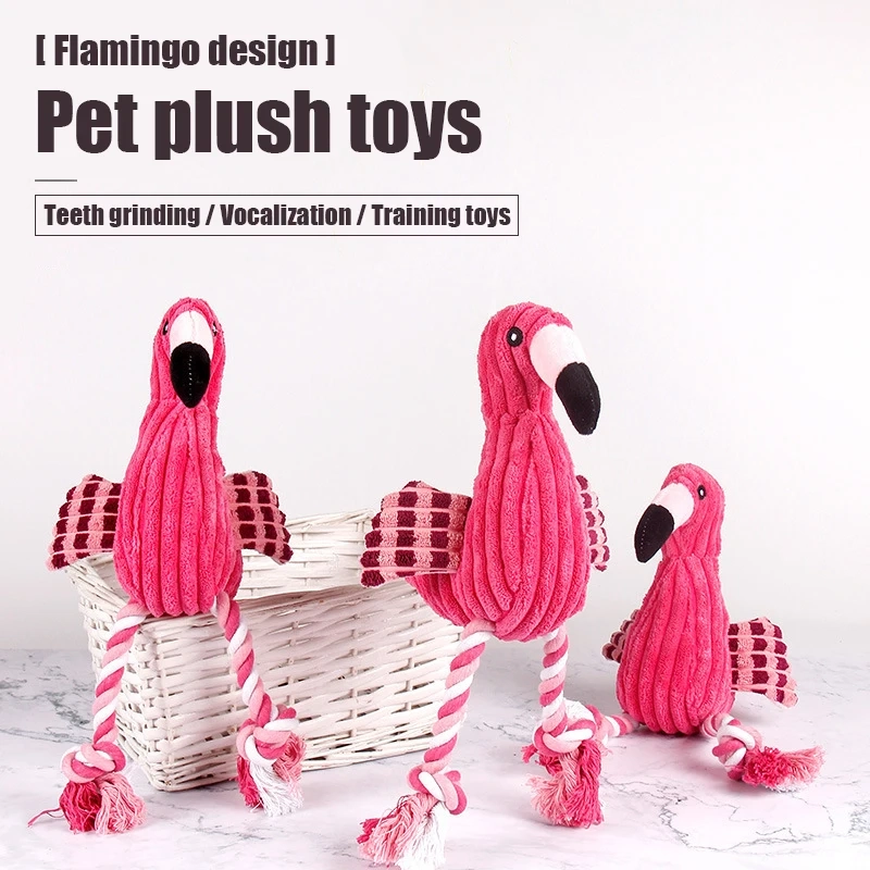 Flamingo Plush Squeaky Dog Toy with Rope Legs