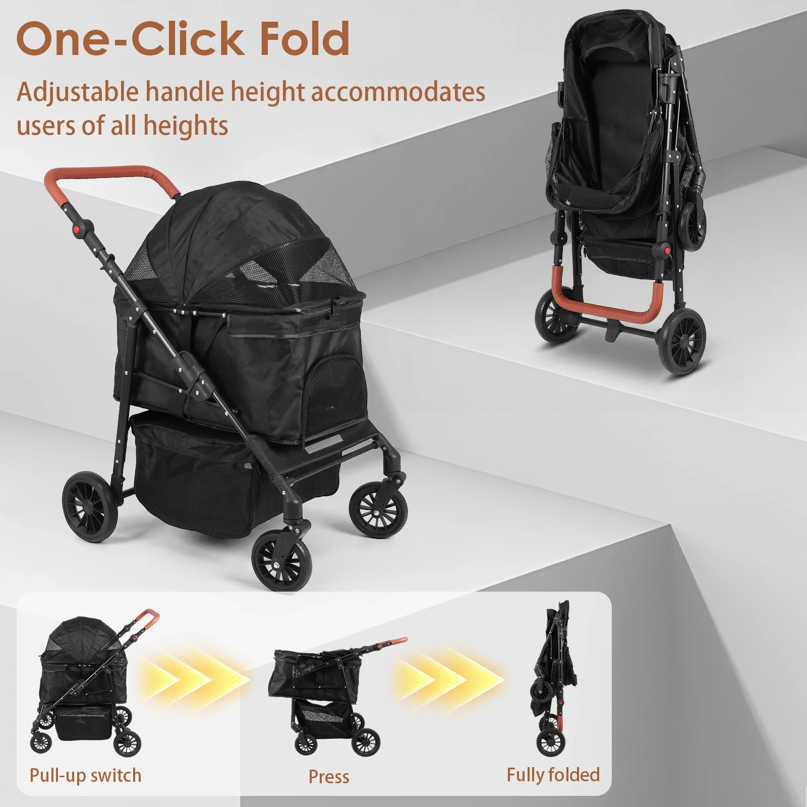 Dog and Cat Stroller Puppy Cage Jogger Stroller Foldable Travel Jogger Foldable Pet Cart