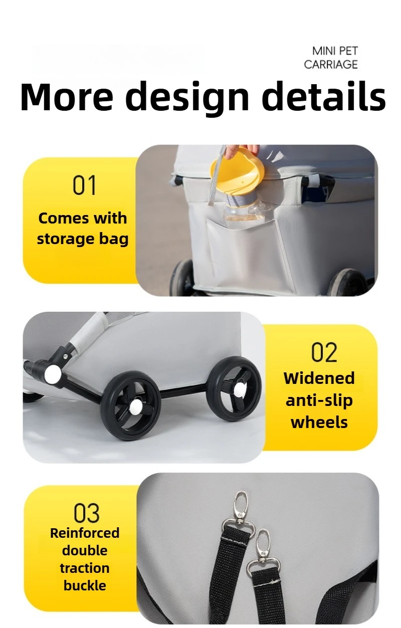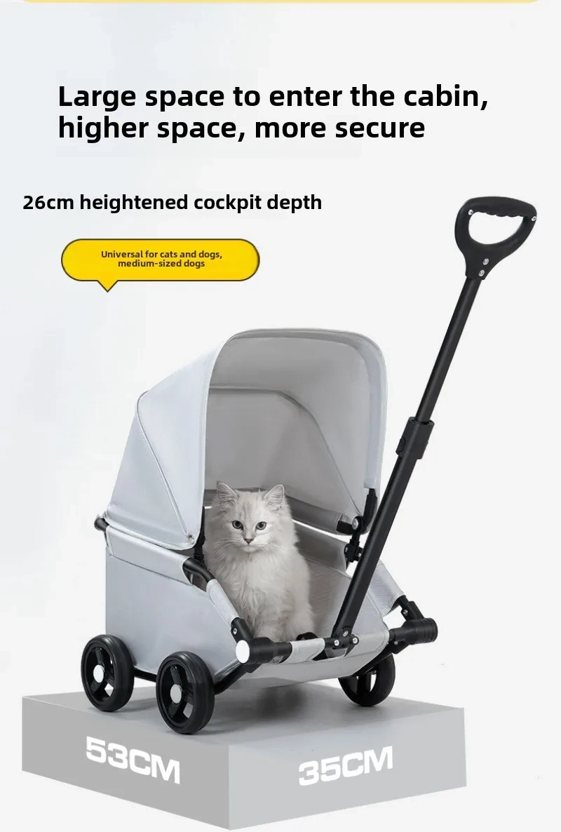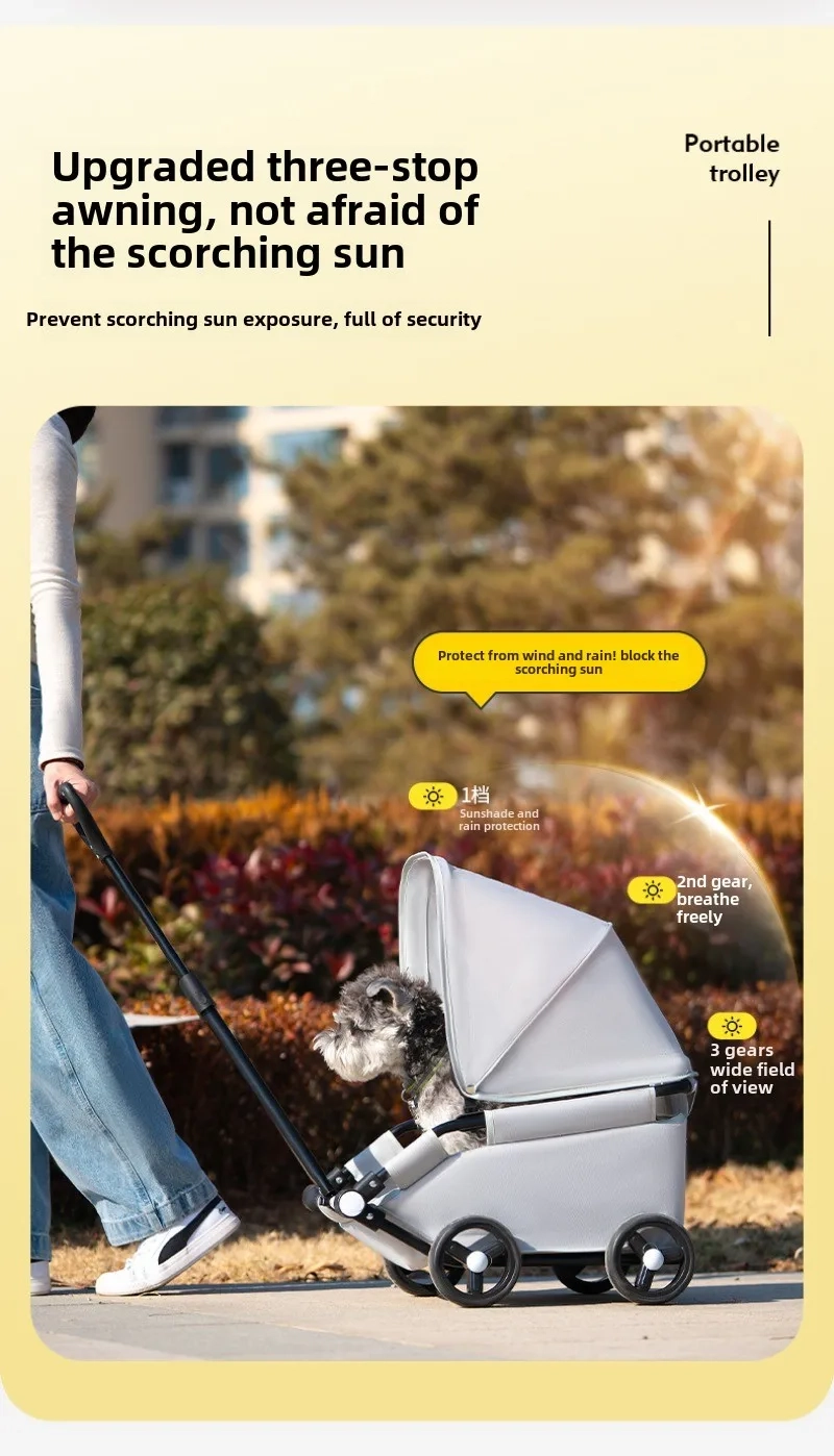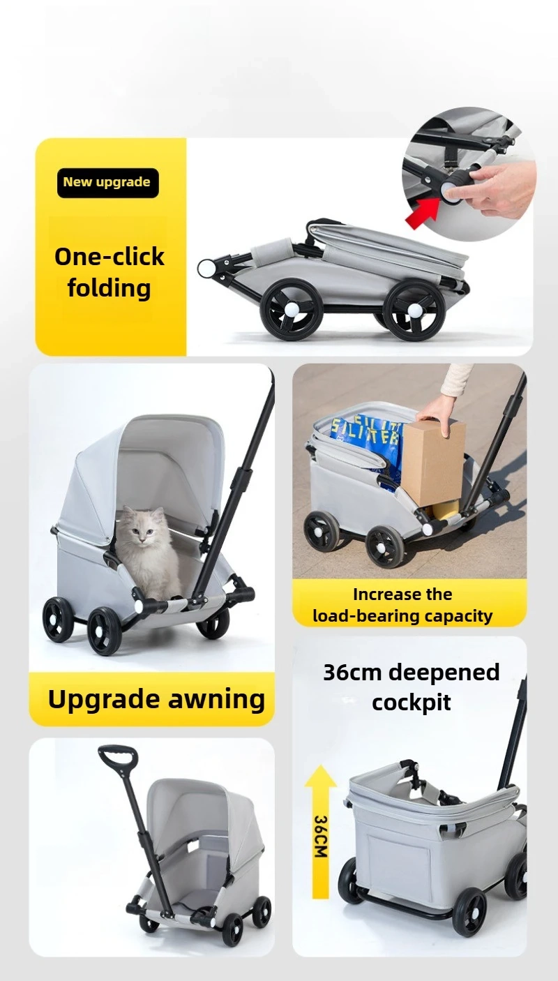 Make daily outings easier with this foldable pet stroller designed for comfortable travel, quick storage, and smooth everyday movement. The enclosed stroller space offers a more convenient way to bring your pet along for walks, shopping trips, and outdoor errands, while the canopy-style top helps create a more shaded and covered ride. With a portable folding design, rotating movement, and a telescopic handle, it is a practical option for pet owners who want more flexibility on the go. Suitable for cats and dogs, this stroller is a convenient choice for short trips, casual outings, and everyday transport.