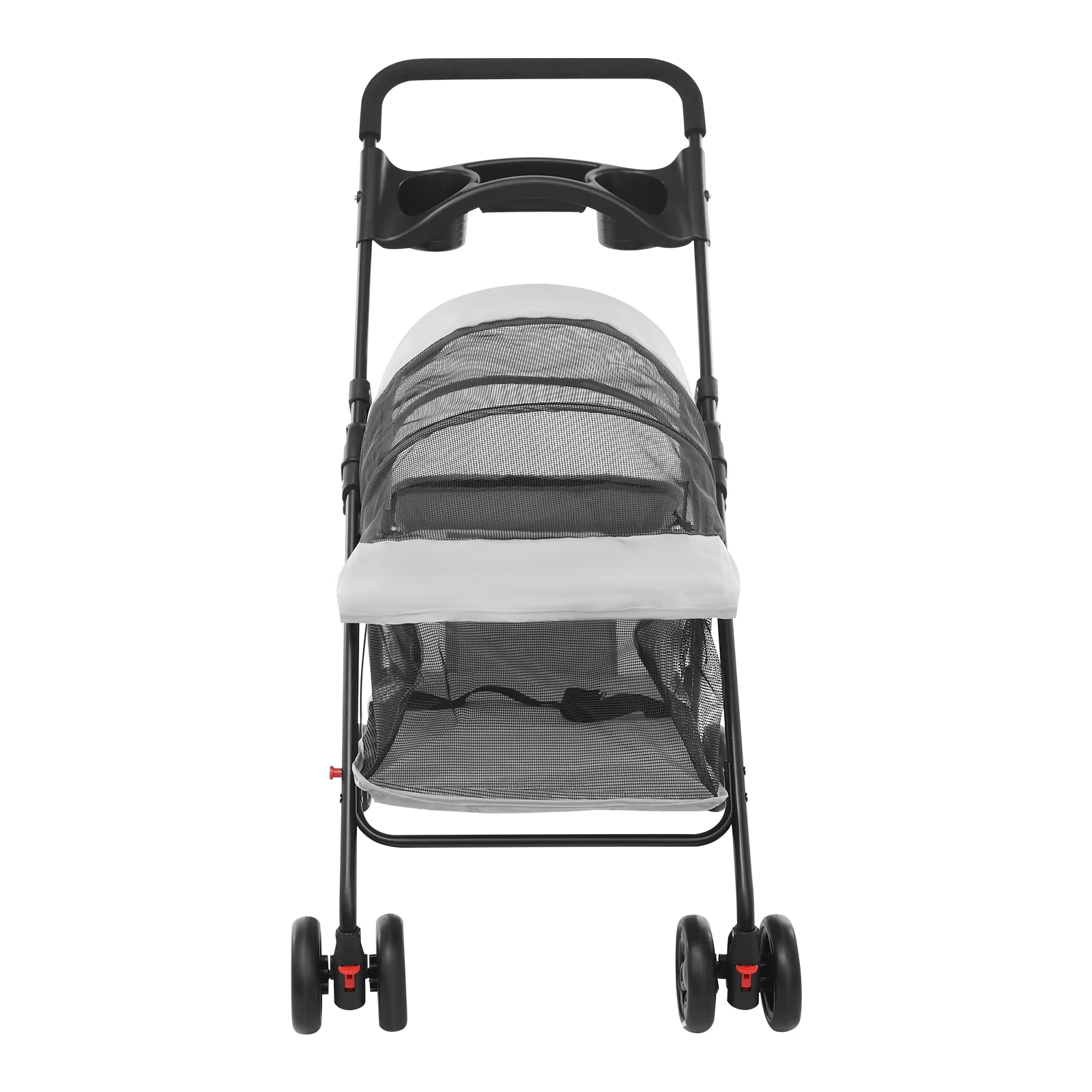 Foldable Pet Stroller with Mesh Basket and Rear Brakes