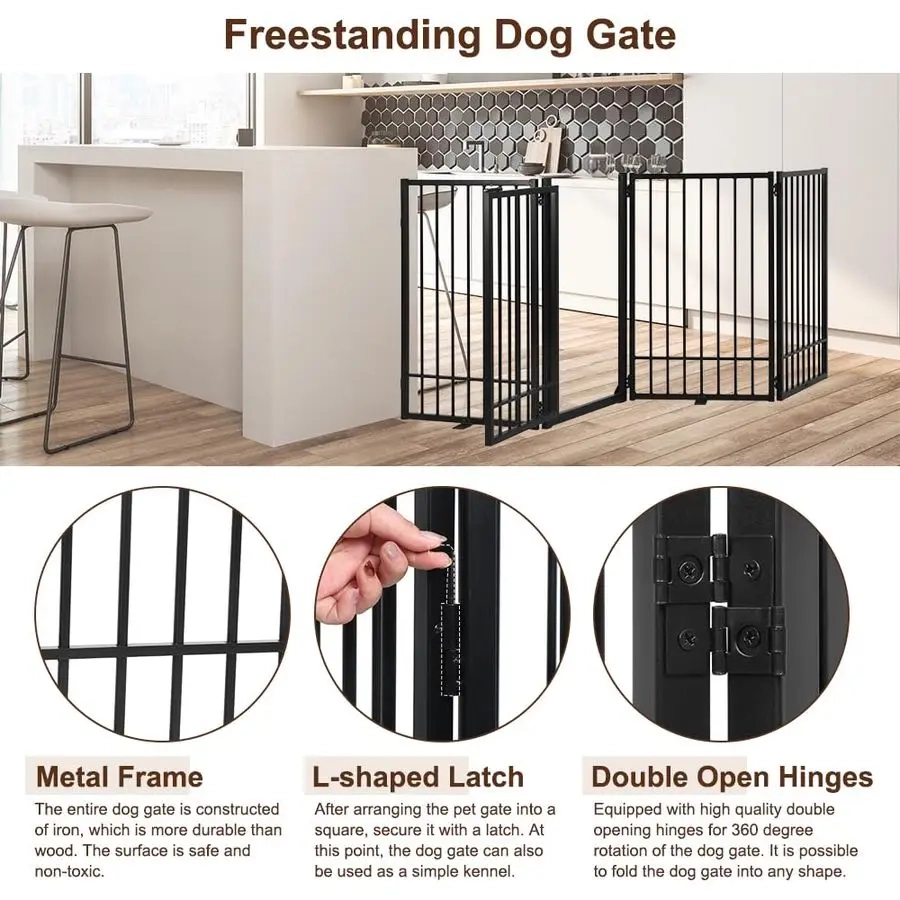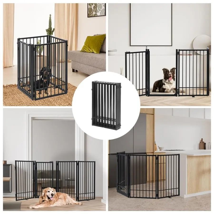 Create a more flexible pet-friendly space with this freestanding pet gate designed for doorways, hallways, stairs, bedrooms, kitchens, and other shared areas around the home. The foldable multi-panel structure makes it easy to position in different layouts, helping you manage pet movement without permanent installation. A built-in door adds everyday convenience by allowing easier access when needed, while the freestanding design supports quick placement and simple repositioning. Suitable for indoor use and selected covered outdoor areas, it is a practical option for creating clearer boundaries while keeping your space more organized.