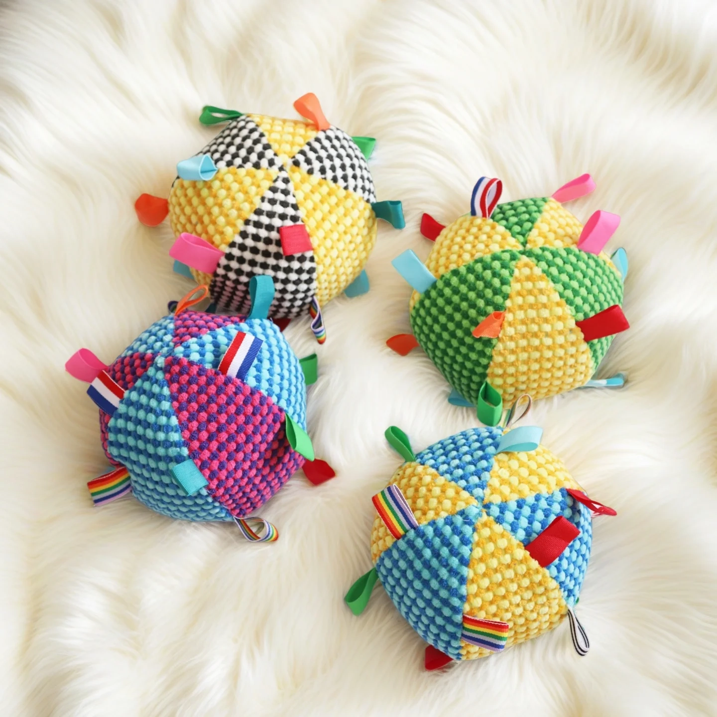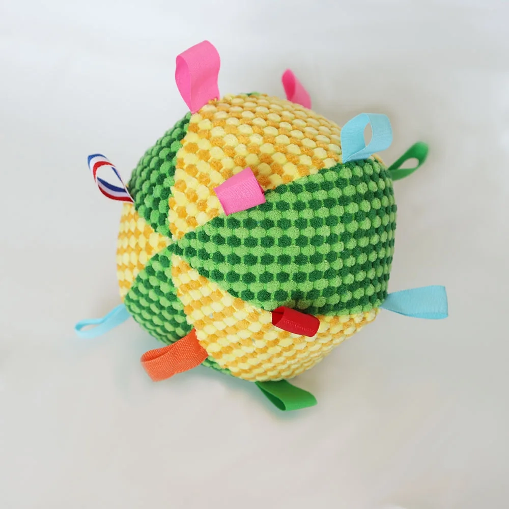 Add a softer touch to your dog’s daily play routine with this fabric ball toy designed for tossing, chewing, and interactive fun. Its lightweight soft-texture design makes it easy for dogs to grab, carry, and chase, making it a playful option for indoor games and everyday activity. The built-in bell adds extra sound stimulation during play, helping keep dogs engaged while encouraging movement and curiosity. Available in multiple color options, it is a fun everyday toy for dogs that enjoy fetch-style play, light chewing, and active bonding time.