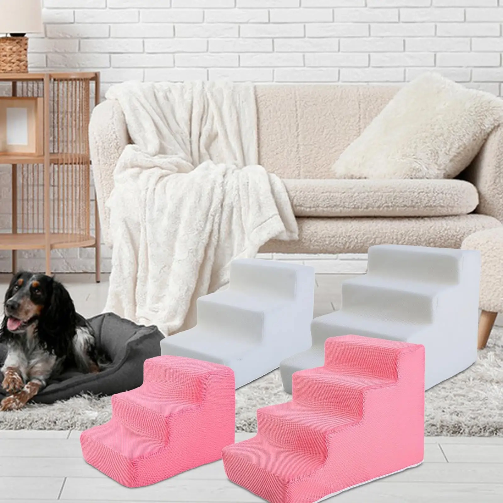 Help pets reach beds, couches, cars, and other elevated spots more easily with these lightweight mesh pet steps designed for everyday use. The supportive high-density sponge interior creates a gentler climbing path, while the step-style design helps pets move up and down with more comfort during daily routines. Available in 3-step and 4-step options, this design makes it easier to match different furniture heights and access needs around the home. With a removable machine-washable cover and a lightweight structure that is easier to carry, it offers a practical balance of comfort, convenience, and everyday support.