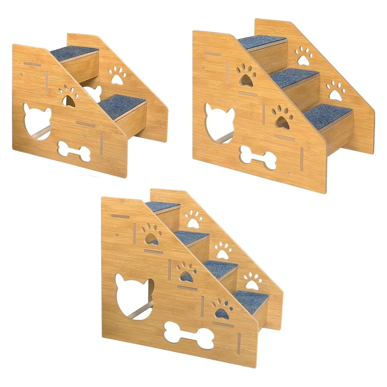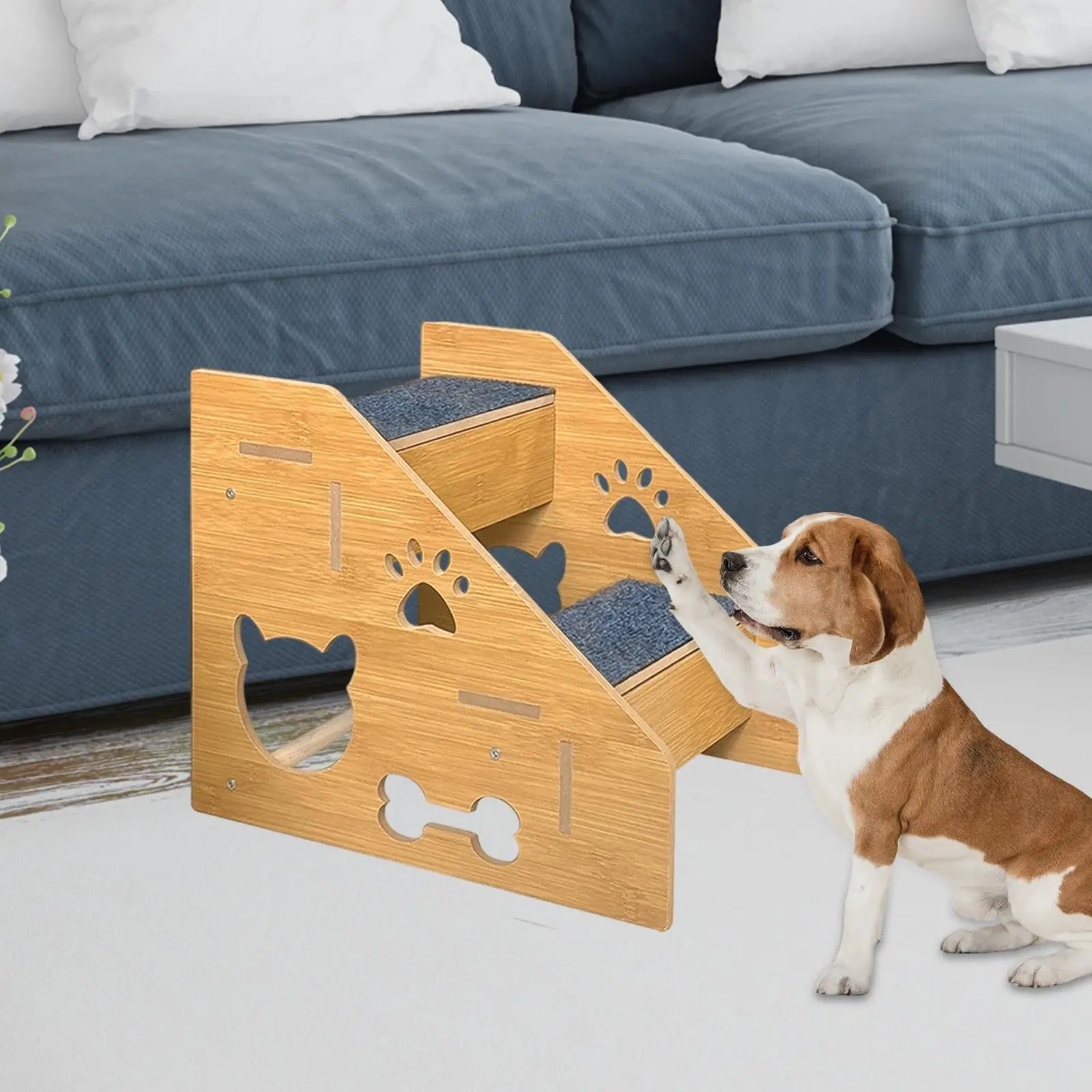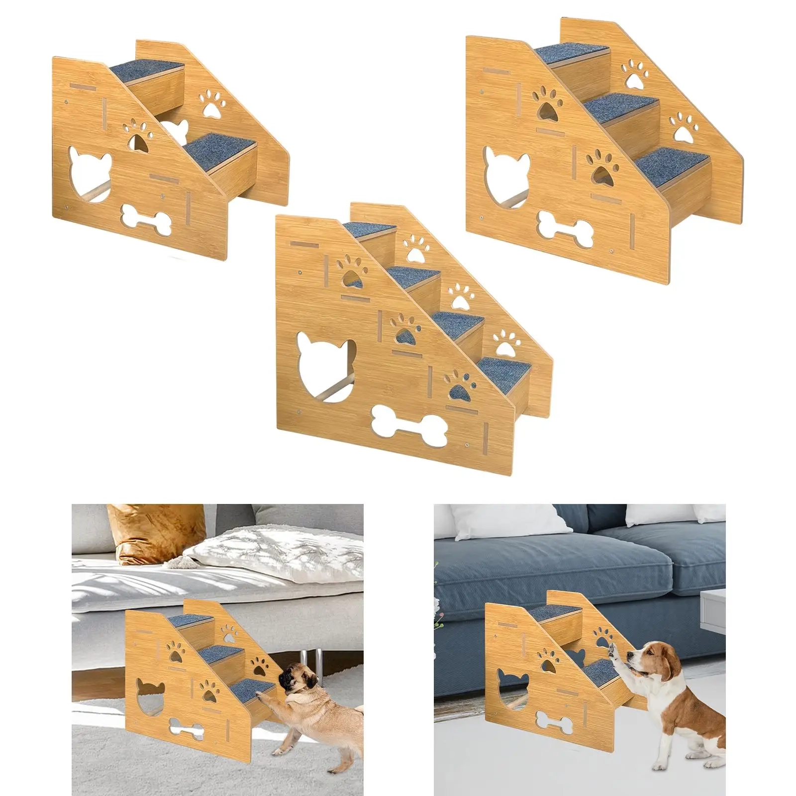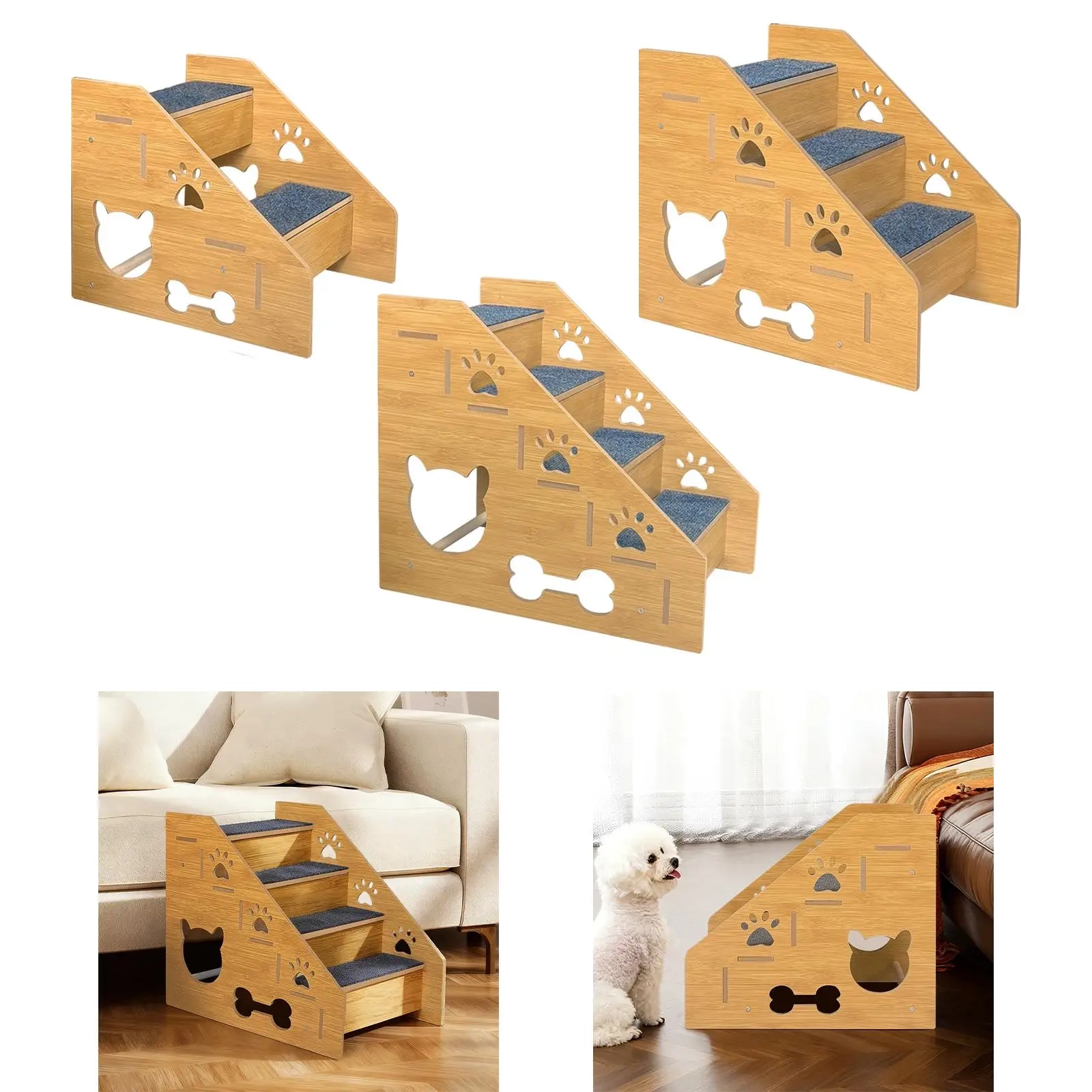 Give your pet a steadier and more comfortable way to reach beds, sofas, and other raised spots with this portable stair ladder designed for everyday indoor use. The step-style structure helps create an easier climbing path, while the non-slip surface supports better footing during daily movement. Its lightweight wooden build makes it easy to place in different areas of the home, and the decorative cutout design adds a playful touch to the overall look. With 2-layer, 3-layer, and 4-layer options available, it works well for different furniture heights and pet needs.