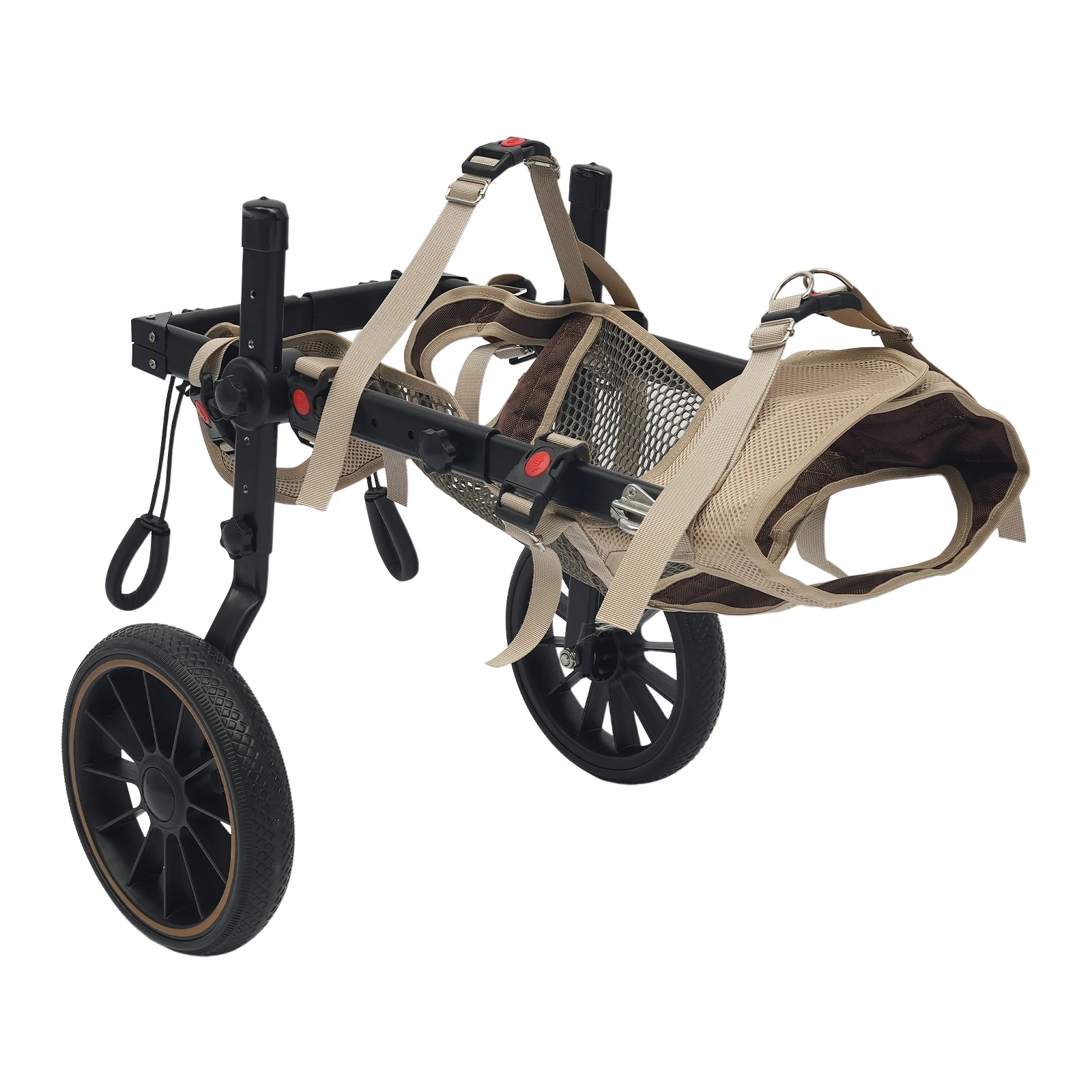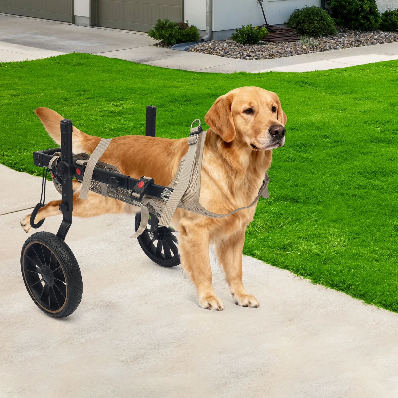 Help your dog stay more active with this rear support wheel cart designed for assisted walking and everyday mobility. The two-wheel structure helps create steady support for the back legs while allowing dogs to move more freely during daily routines. Its adjustable frame and harness-style support system make it easier to achieve a more secure fit, while the larger wheels are suited for smoother movement across a variety of surfaces. It is a practical mobility aid for dogs that need extra support while staying engaged at home or during outdoor walks.