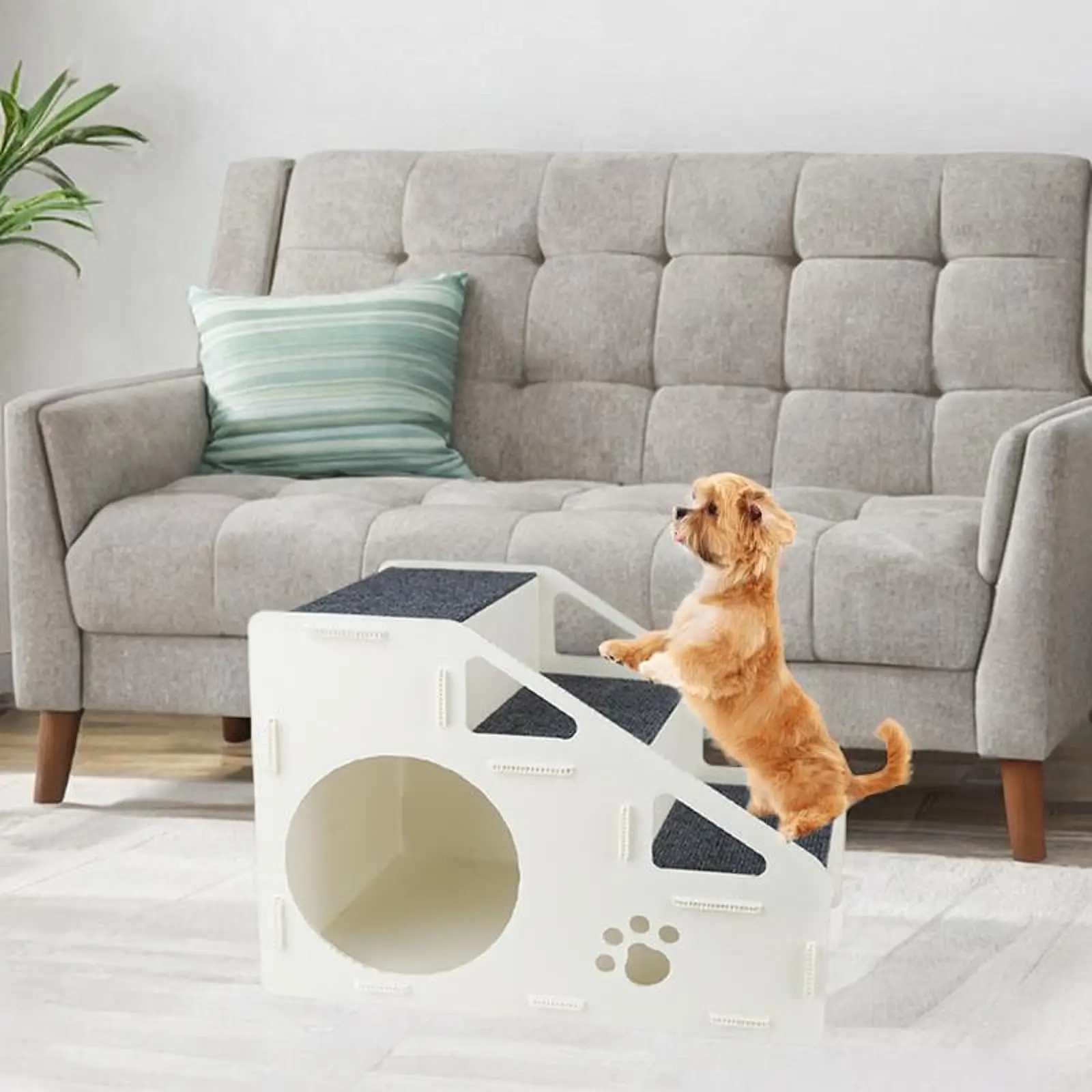 Make everyday movement around the home easier with these removable non-slip pet steps designed for beds, sofas, and other elevated spots. The multi-step structure gives pets a steadier path for climbing up and down, while the supportive surface helps provide better traction during daily use. Available in 3-step and 4-step options, this design works well for different furniture heights and room setups. With a lightweight detachable build that is easier to move and maintain, it offers a practical solution for pets that need a more stable way to reach their favorite resting places.