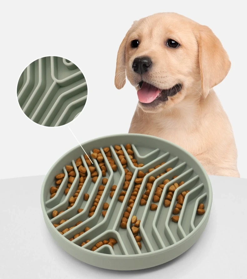 Round Non-Slip Slow Feeder Bowl for Cats and Dogs
