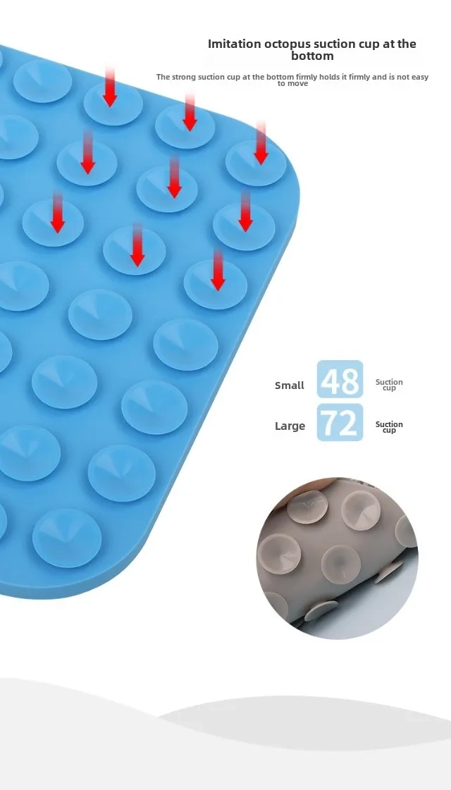- Strong suction cup base helps keep the mat in place