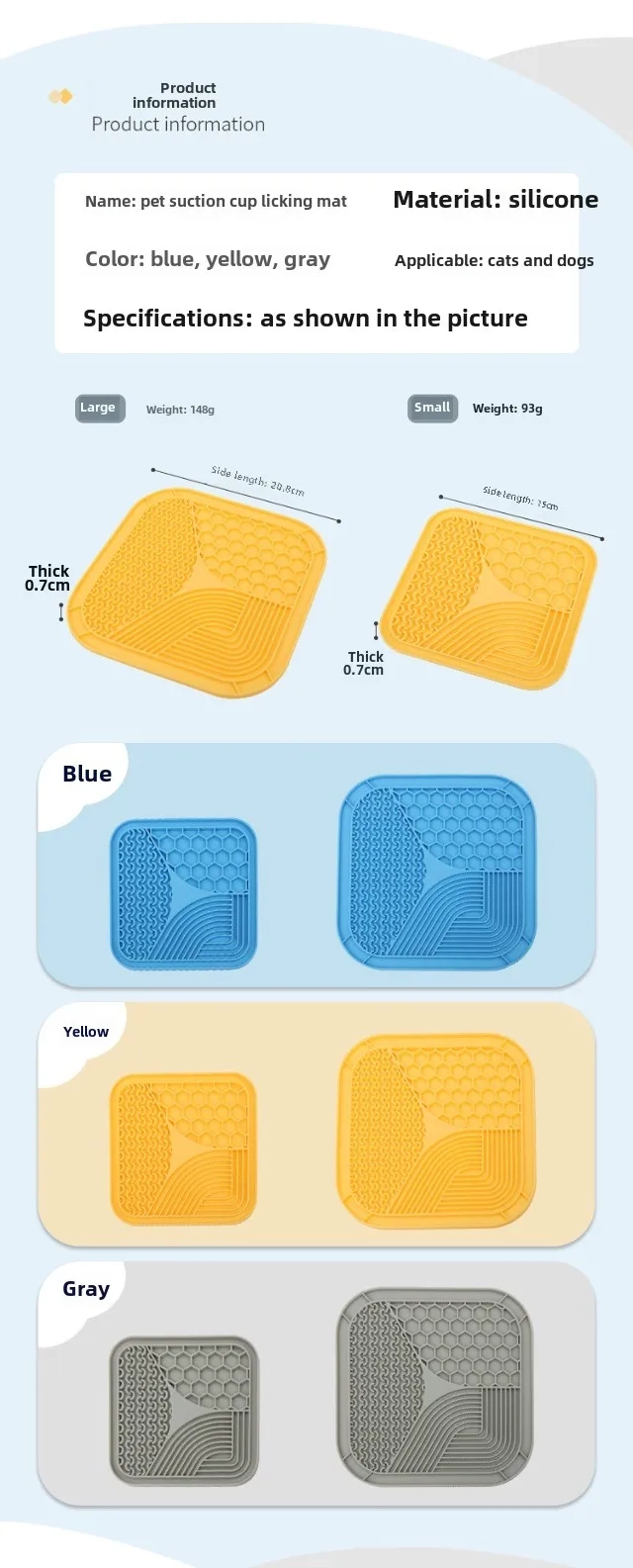 | Product Name | Pet Suction Cup Lick Pad | Color | Yellow/Blue/Gray |
