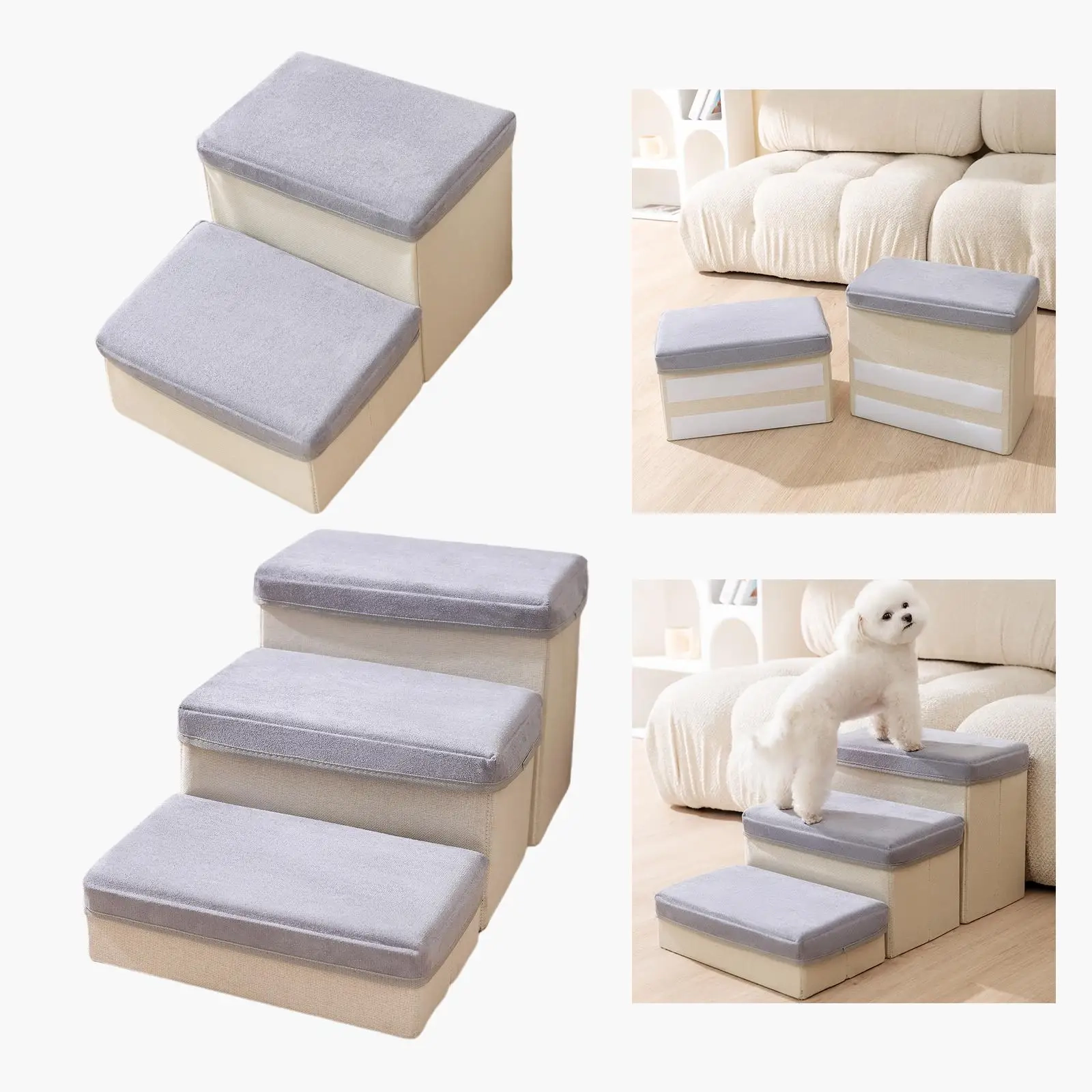Give your pet an easier way to reach beds, sofas, and other elevated spots with these soft pet stairs designed for everyday home use. The step-style design helps create a more comfortable path for climbing up and down, while the lightweight structure makes it easier to move the stairs wherever needed around the home. With two size options available, this piece works well for different furniture heights and living spaces. The soft surface, supportive shape, and non-slip base make it a practical choice for pets that prefer a gentler and more stable way to move between floor level and favorite resting areas.