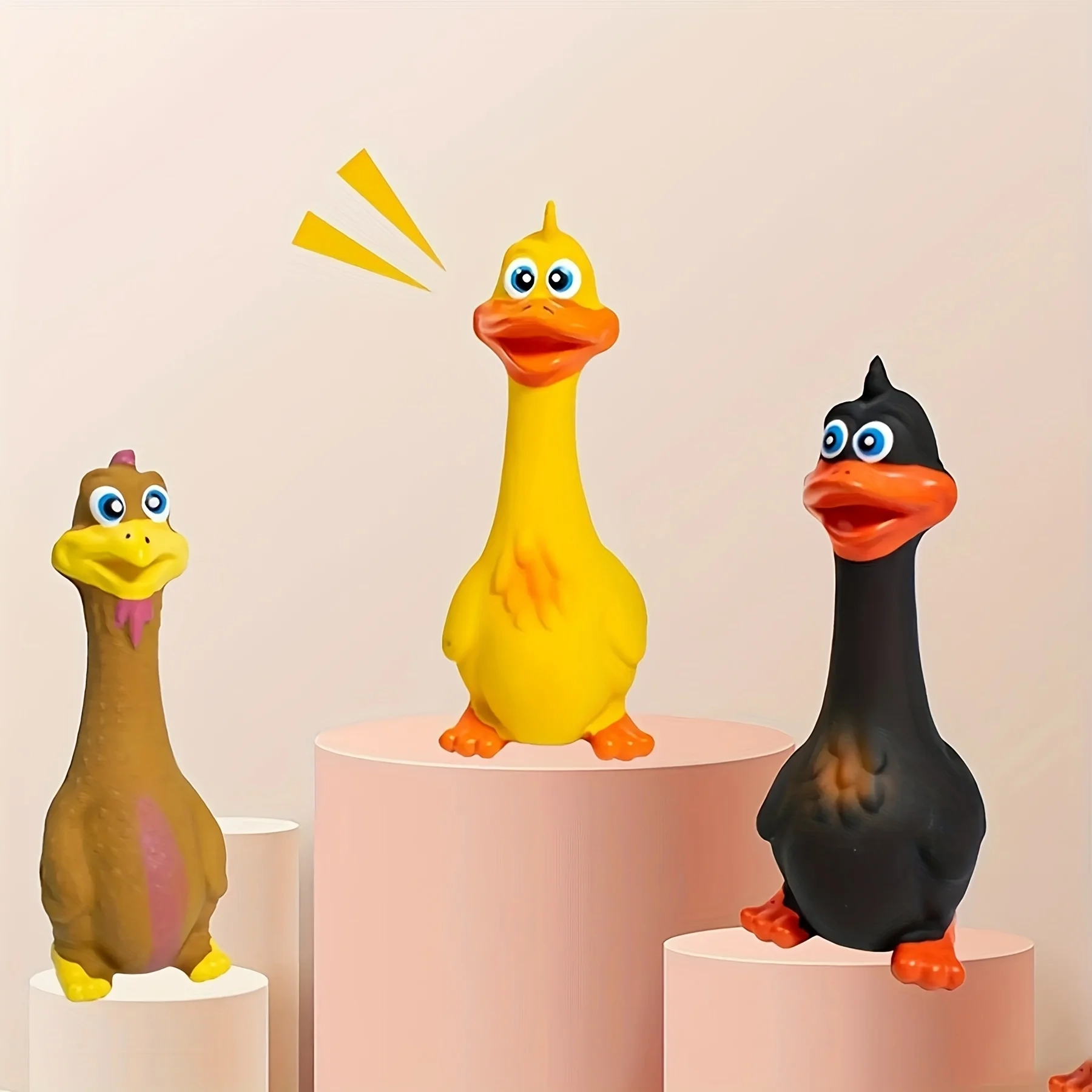 Bring extra excitement to your dog’s play routine with this fun animal-shaped squeaky toy designed for chewing, chasing, and interactive play. Featuring playful chicken and duck-inspired character styles, it adds movement and sound to everyday activity time, helping keep dogs curious and engaged. The easy-to-grab shape makes it suitable for tossing, carrying, and light chewing, while the squeaky design adds instant feedback that many dogs enjoy during solo play or shared playtime. It is a lively everyday toy for dogs that enjoy sound, movement, and playful interaction.