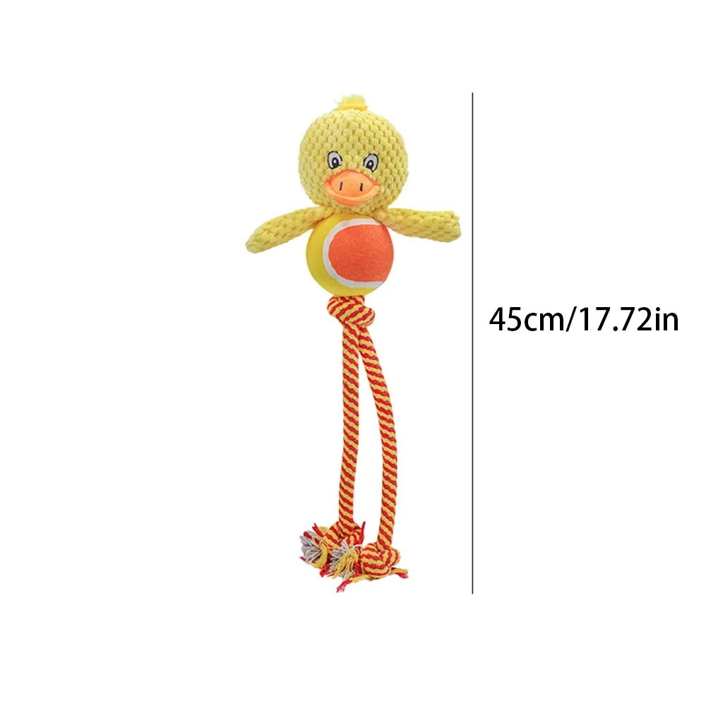 Keep your dog entertained with this plush rope toy designed for chewing, tugging, and everyday interactive play. The soft plush exterior combined with rope elements creates a fun mix of texture, making it enjoyable for dogs that like to bite, carry, and stay active indoors. A built-in squeaky feature adds extra excitement during play, helping keep dogs engaged for longer. It is a playful everyday toy for dogs that enjoy light chewing, self-play, and bonding time with their owners.