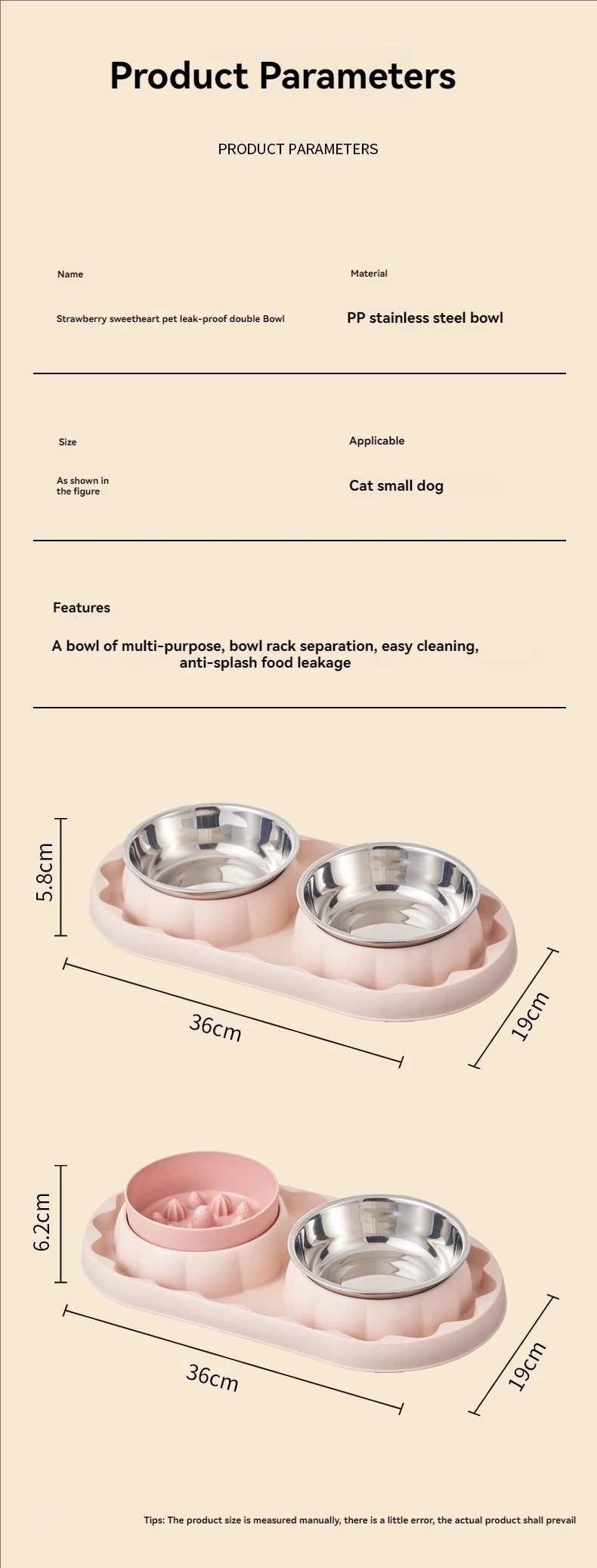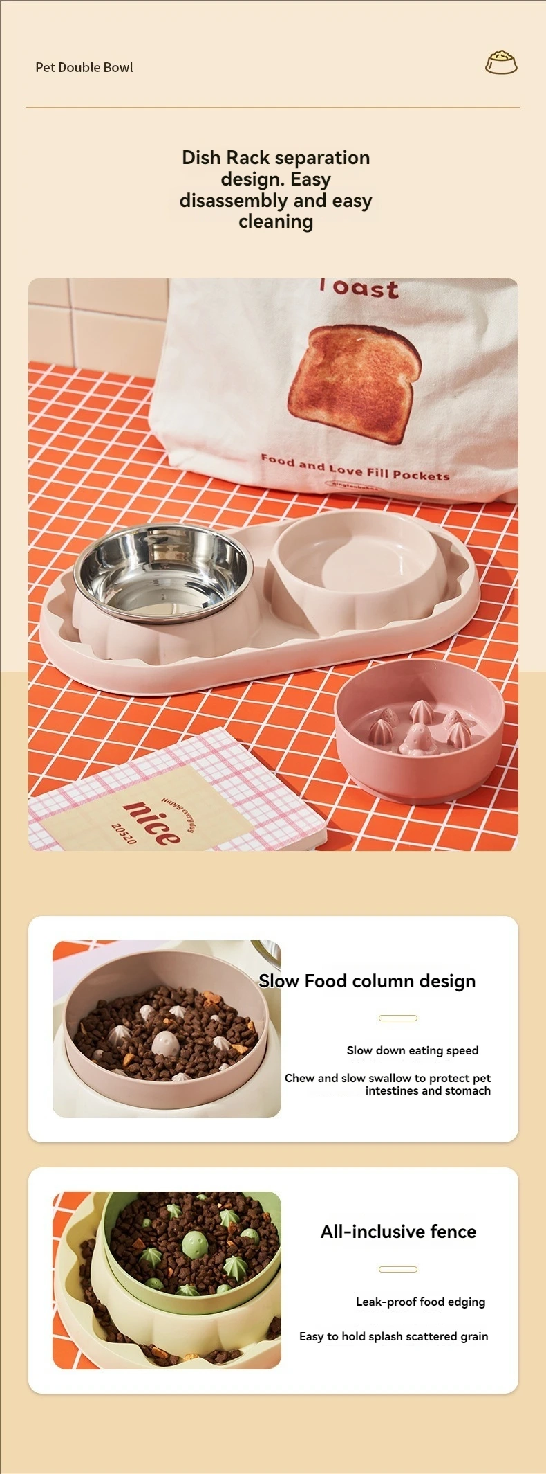 Make everyday feeding more organized and comfortable with this stainless steel double pet bowl designed for both regular feeding and slower eating routines. The dual-bowl layout adds convenience for serving food and water or separating different feeding needs, while the slow feeder side helps encourage a more controlled eating pace. Its stainless steel bowl design offers a practical everyday option for home use, and the spill-resistant structure helps keep the feeding area cleaner during meals. Available in multiple color and style options, it is a versatile choice for pets that benefit from a tidier and more structured mealtime setup.