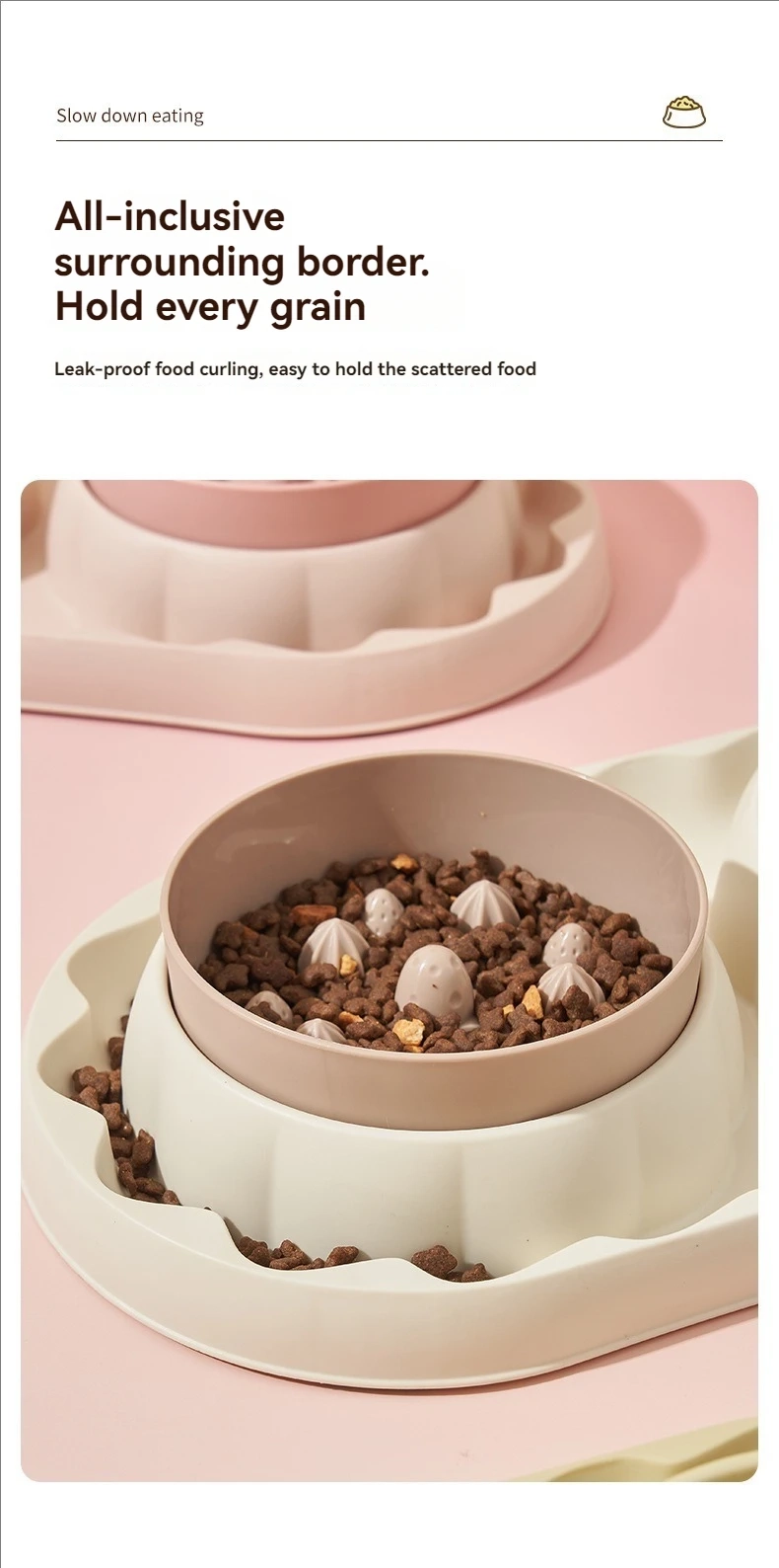 - Slow feeder side helps support a more controlled eating pace