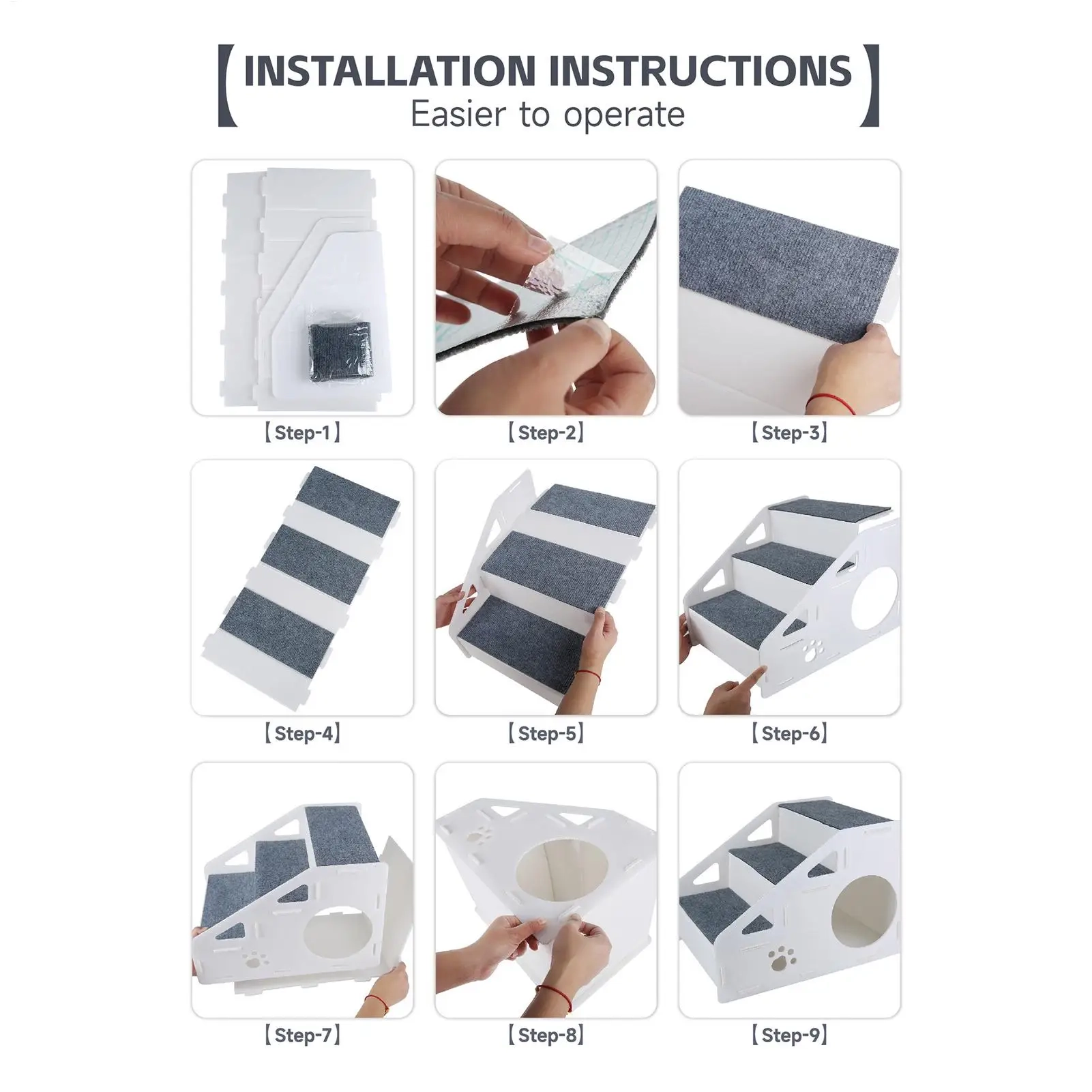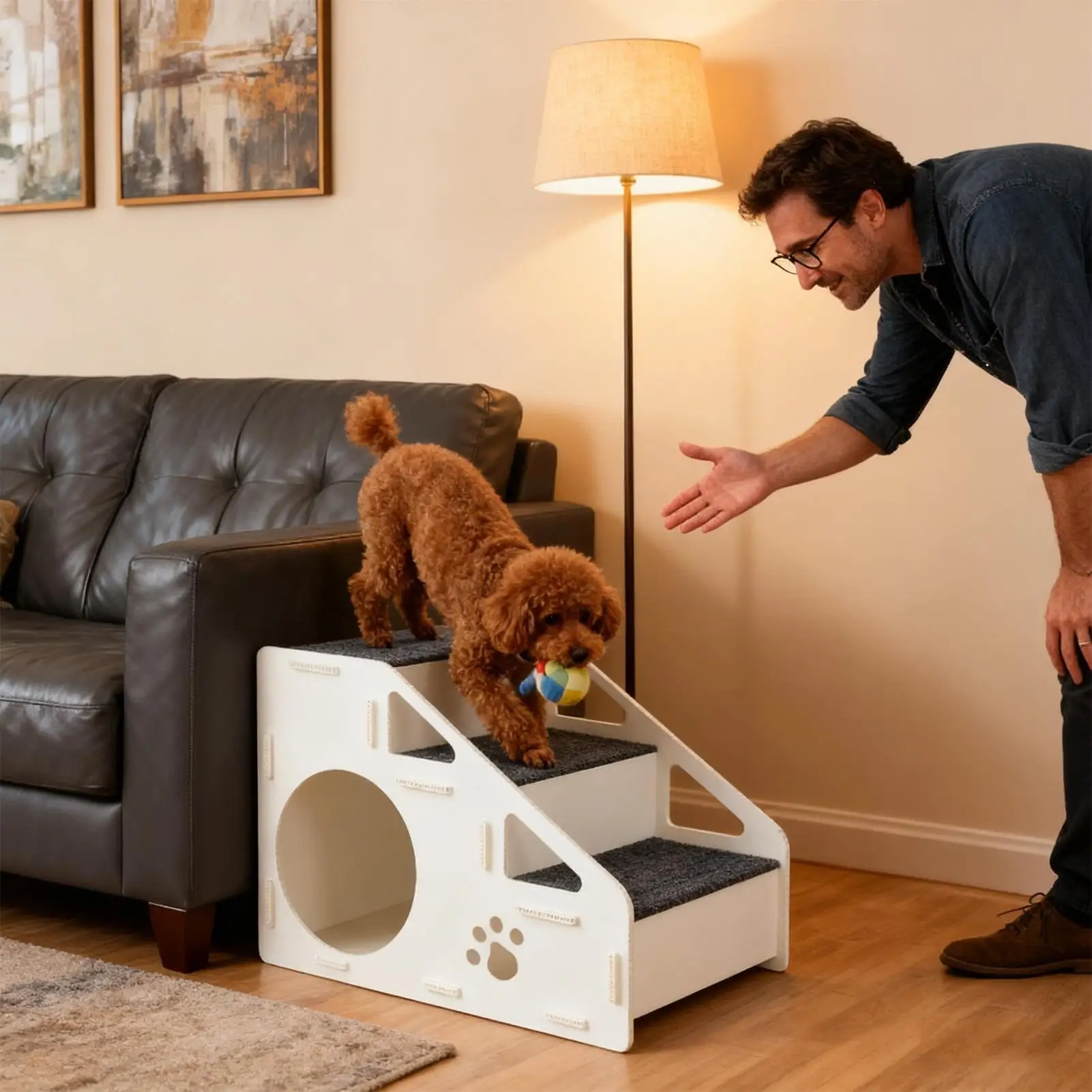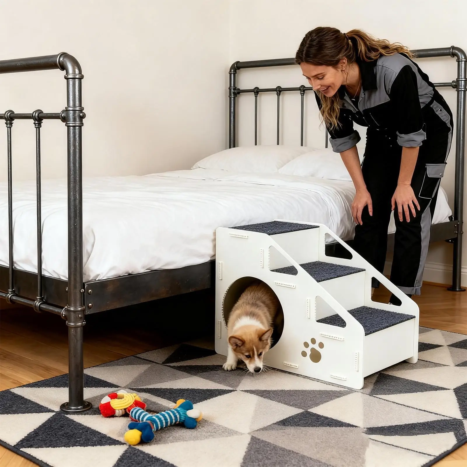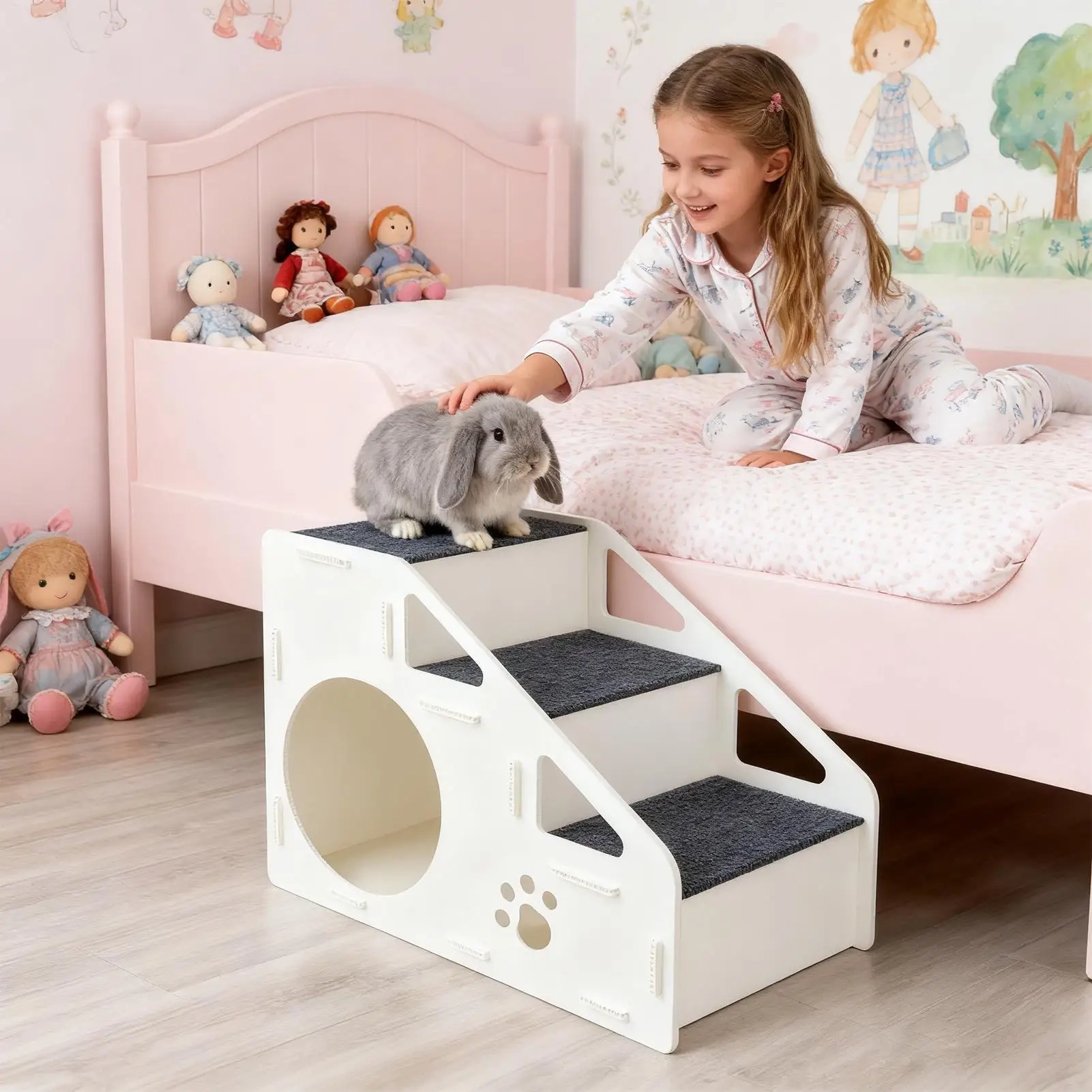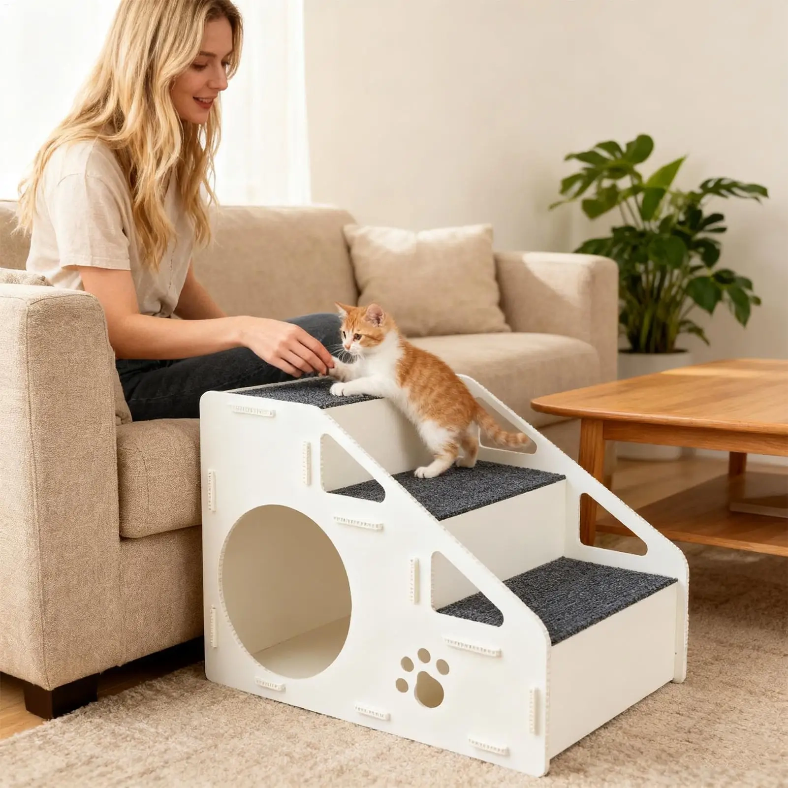 Make it easier for pets to reach beds, sofas, and other elevated spots with these storage pet bed steps designed for everyday home use. The step-style layout creates a steadier climbing path, while the textured non-slip surface helps pets move up and down with more confidence during daily routines. Its multifunctional design combines access steps with a built-in resting area and handy storage space, making it a practical choice for compact living areas. With a lightweight structure and a cover that can be removed for cleaning, it offers a convenient blend of support, comfort, and everyday function.