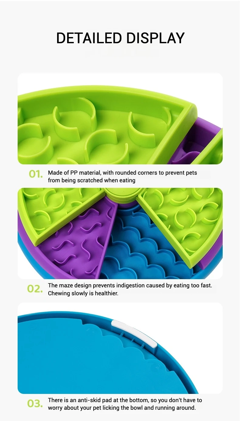 Turn everyday feeding into a more engaging activity with this three-layer rotating puzzle slow feeder bowl designed for dogs. The layered maze structure helps encourage a slower eating pace while adding interactive challenge to regular mealtimes, making it a practical choice for pets that tend to eat too quickly or benefit from extra stimulation. Its rotating design brings variety to feeding routines, while the deeper compartments help keep food contained for a tidier setup. With a stable non-slip base and pet-friendly shape, it is a useful everyday feeder for calmer, more focused meals at home.