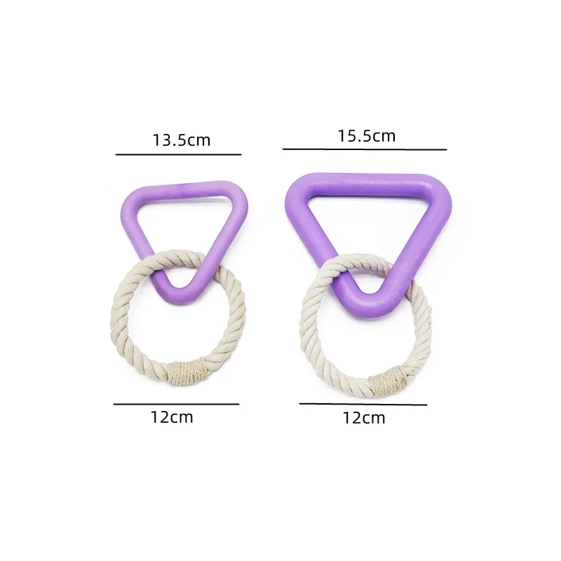 Keep your dog active and engaged with this triangle-shaped tug toy designed for chewing, pulling, and interactive play. The combination of a textured chew section and cotton rope ring creates a fun mix of bite, grip, and movement, making it a great option for dogs that enjoy tug games and everyday play sessions. Its easy-to-hold shape works well for tossing, grabbing, and shared play, while the available size options make it easier to choose the right fit for different dogs. It is a playful everyday toy for chewing fun, training interaction, and indoor or outdoor activity.